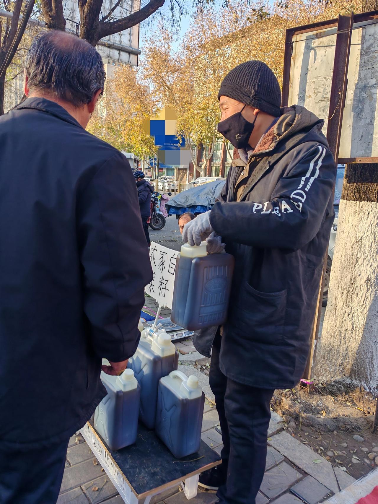这是一种新现象 12月14日,陕西西安。我今天早上路过市场,发现这家小摊的生意突然火了起来。 这个口罩哥是我们这个片区卖自榨菜籽油的摊主,他家开的榨油房,家人加工,他负责在北郊龙首原、红庙坡、方兴村、凤十等各个集市轮流售卖,每月逢4的日子来我们这片区。 他家菜籽油卖每斤十元,一桶就是10斤,口罩哥说以前生意一般,有时候早上只能卖一两桶,可最近来买他家菜籽油的人多了起来,以前他给发名片没人要,现在有人追着加微信。 看来市民逐渐觉醒了,以前总觉得这种土榨油虽然香,但担心小作坊卫生不达标,大家都趋向于购买商超的桶装油,现在突然发现这种原榨无添加的食用油也许是最放心的。