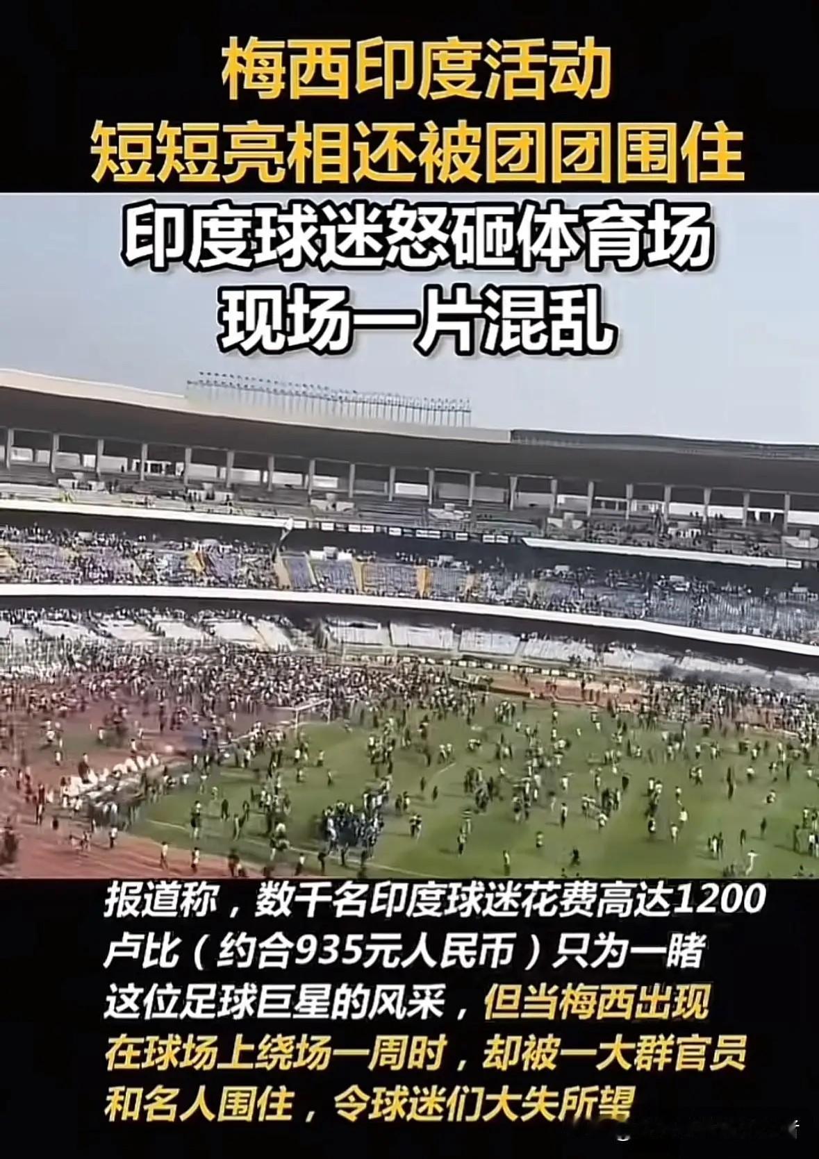 梅西这个人,2023年在香港参加球赛欺骗了中国球迷的感情,还好大家比较理性,没有做出什么出格的举动,保持了冷静与愤怒。 毕竟世界上缺少了谁也无所谓,包括你叫梅西的人,既然不爱了,那就放手。 但是他这次故技重演,欺骗了印度球迷的感情。 可印度的球迷就没有那么理性了,不光梅西没有受什么伤害,反而把自己给伤了,本来就没有什么钱,还把球场给砸了,这不是搬起石头砸自己的脚,赔了夫人又折兵吗? 不是球票买不起,而是梅西做人没有性价比。 看来世界上的感情骗子,会使一把无形的刀,插人心窝,实在是可恶至极。 梅西 球星梅西 C罗梅西 阿根廷球星梅西 梅西C罗 欧冠传奇梅西 msn梅西 梅西体育场