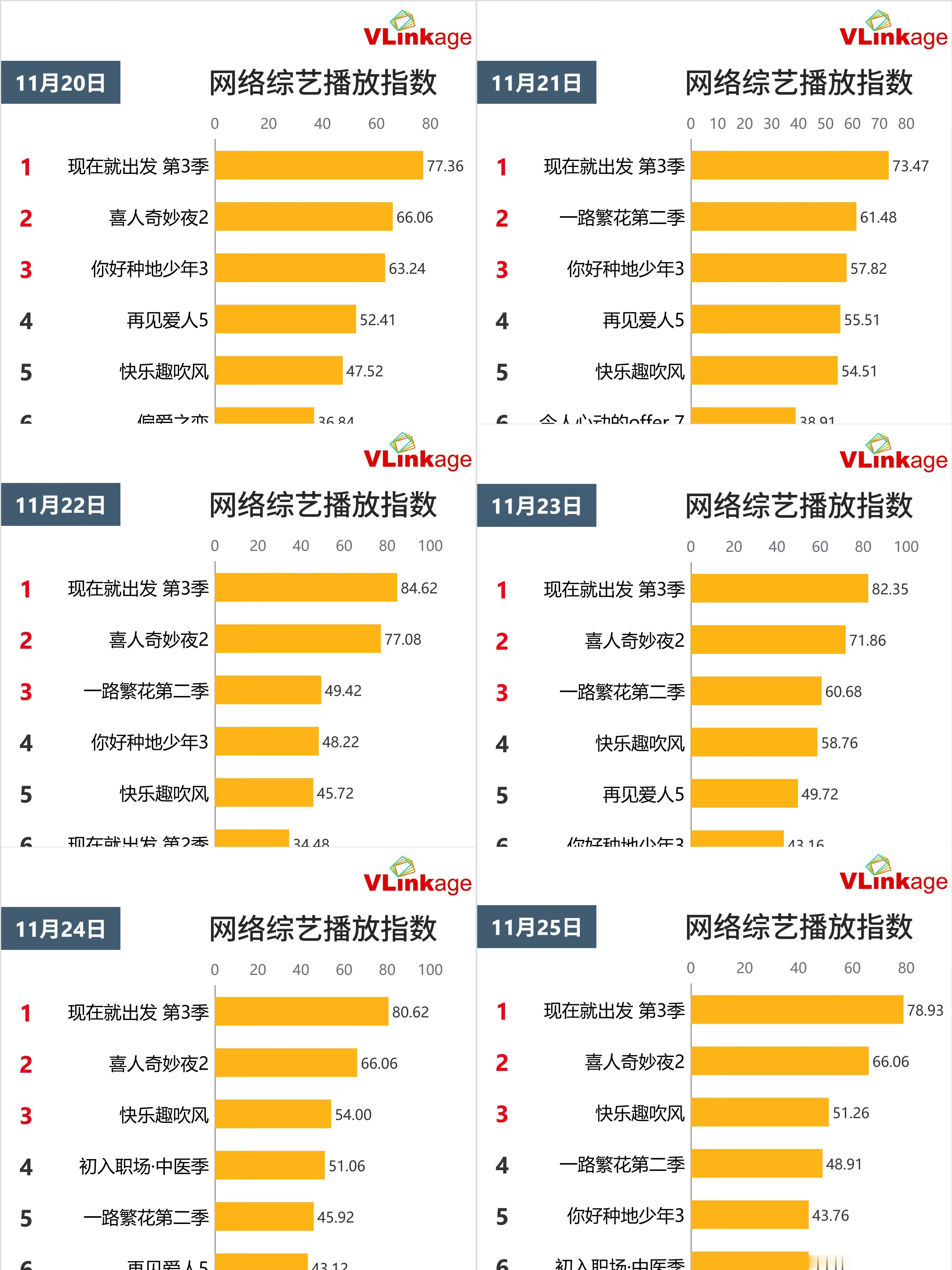 我闲来无事看了一圈《现在就出发3》迄今为止的各项书局,明白为什么围着这个综艺有这么多人总挑事儿,因为这个综艺实在播得太好了,有人酸了!从定档那天起V榜就是Top1,而且是每天第一,持续至今!腾讯综艺热度最快破2万5,最快破2万6,更创下腾讯综艺热度【历史记录】更新过半,已经进入拉新年榜第9,远远超越自己的前两季,这是综艺史上季播综艺从未有的现象,说明这一季的嘉宾选得非常成功,国民度,综艺感和嘉宾间的化学反应都到位了!黄景瑜现在就出发