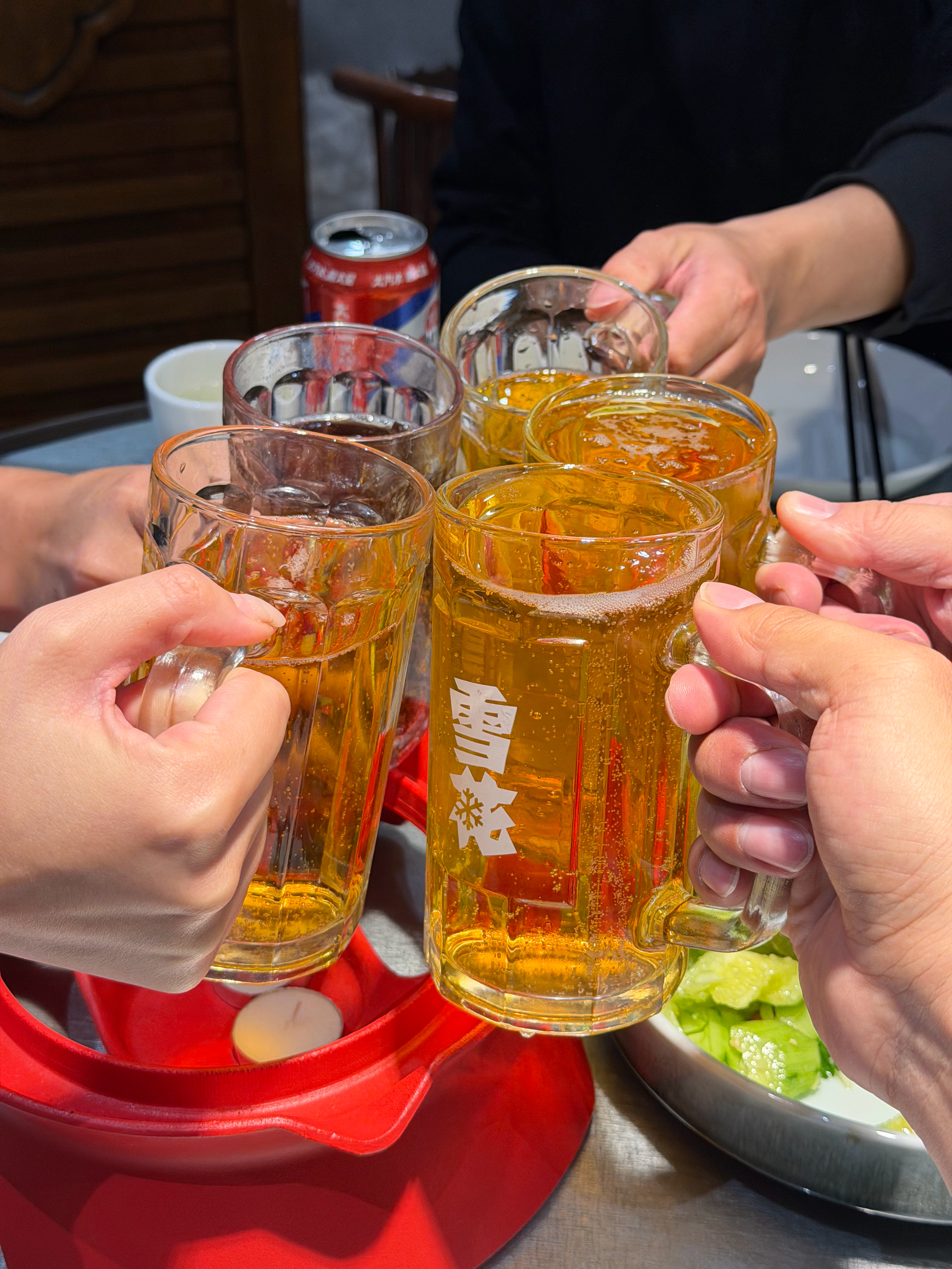 我问服务员凉的和常温的哪个更凉,服务员噗呲笑了不知道咋回答,那就算了,举杯就是喝吧🍻🍻