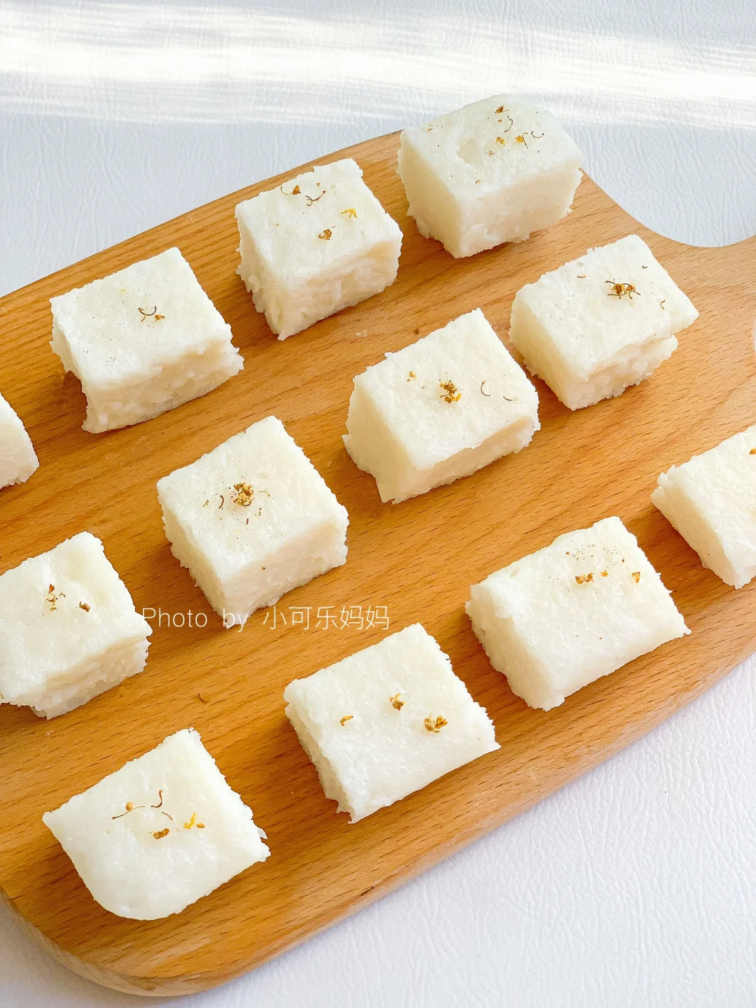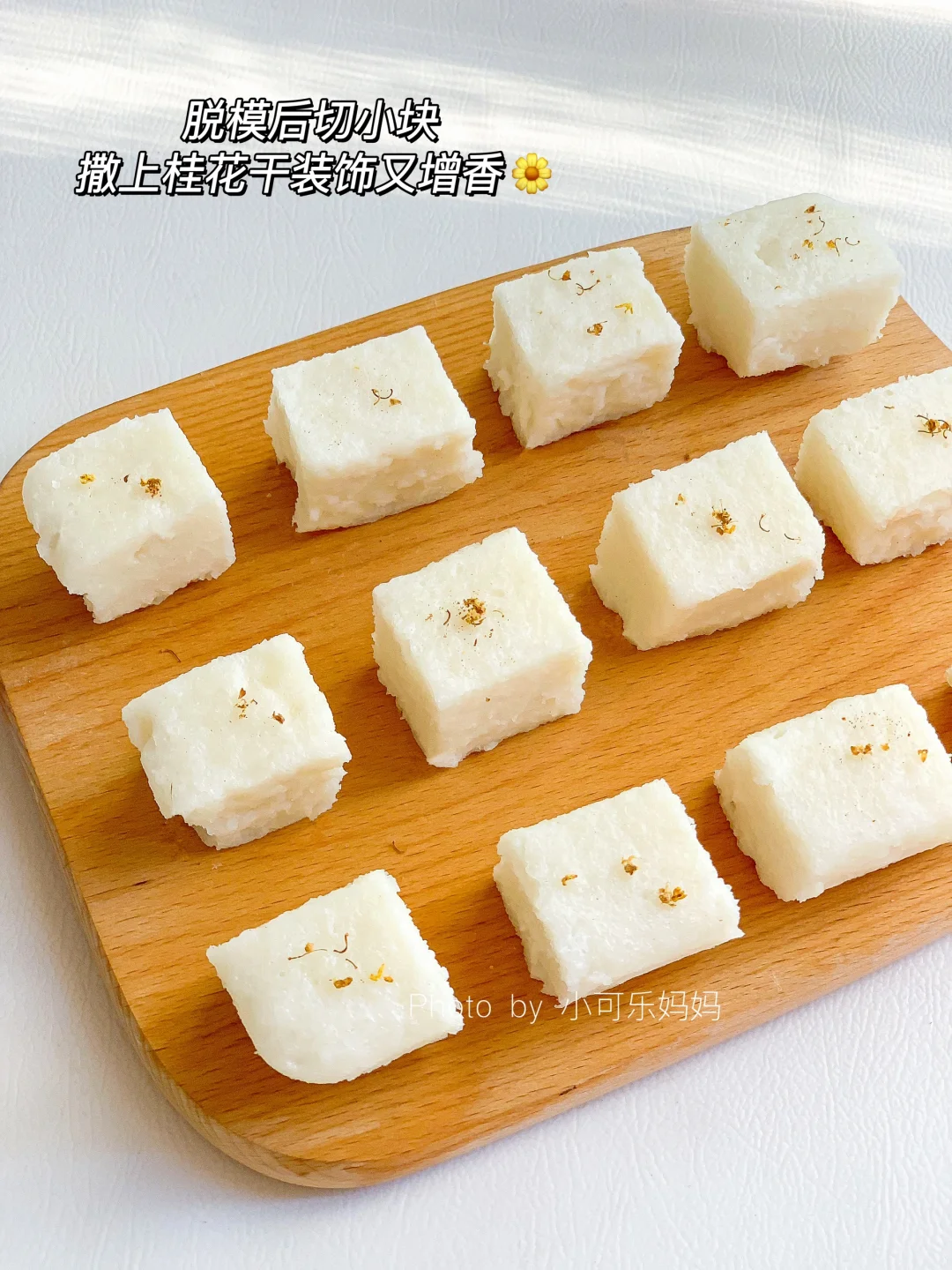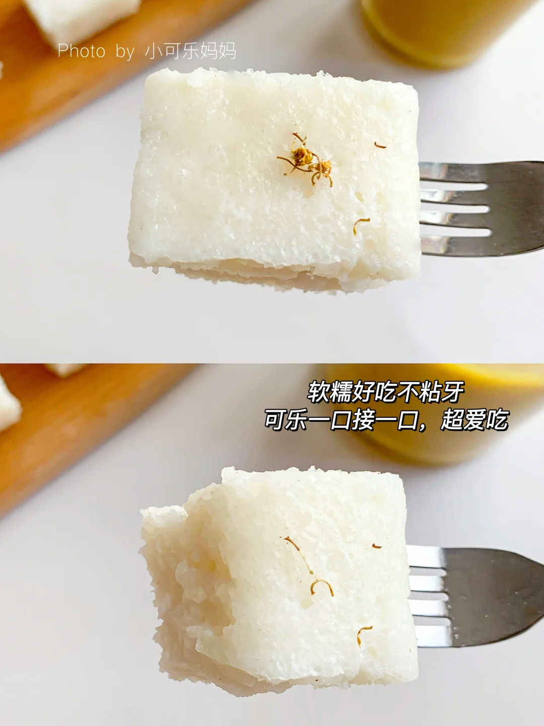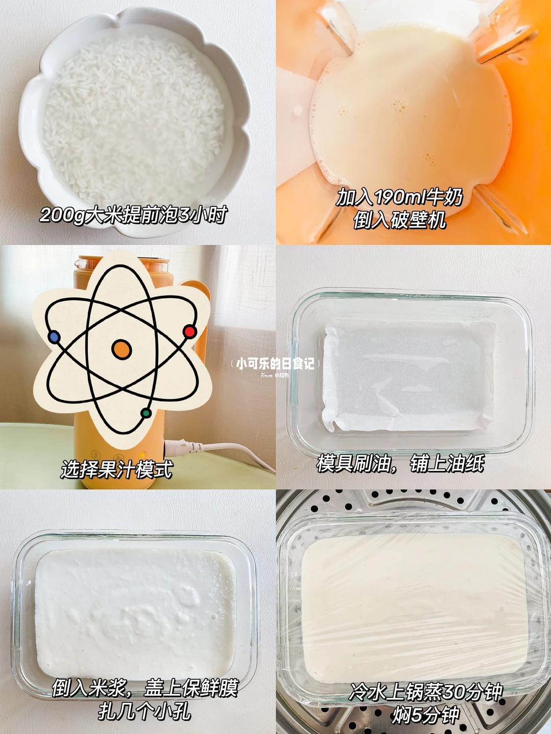 今天分享可乐爱吃的牛奶大米糕,香甜软糯,奶香味十足,糯叽叽超好吃。做法也很简单,不用打发,搅一搅蒸一蒸就可以啦,快给宝宝安排吧 - 🌟食材 大米200克 牛奶190毫升 白砂糖12克 . 🌟做法 1⃣️大米提前浸泡3小时,加入190毫升牛奶,倒入破壁机,再加糖 2⃣️选择果汁模式,模具刷油铺上油纸 3⃣️倒入米浆,盖上保鲜膜扎几个小孔,冷水上锅蒸30分钟,焖5分钟 . 已减糖,可根据自己或宝宝口味增加甜度,推荐一岁半以上宝宝