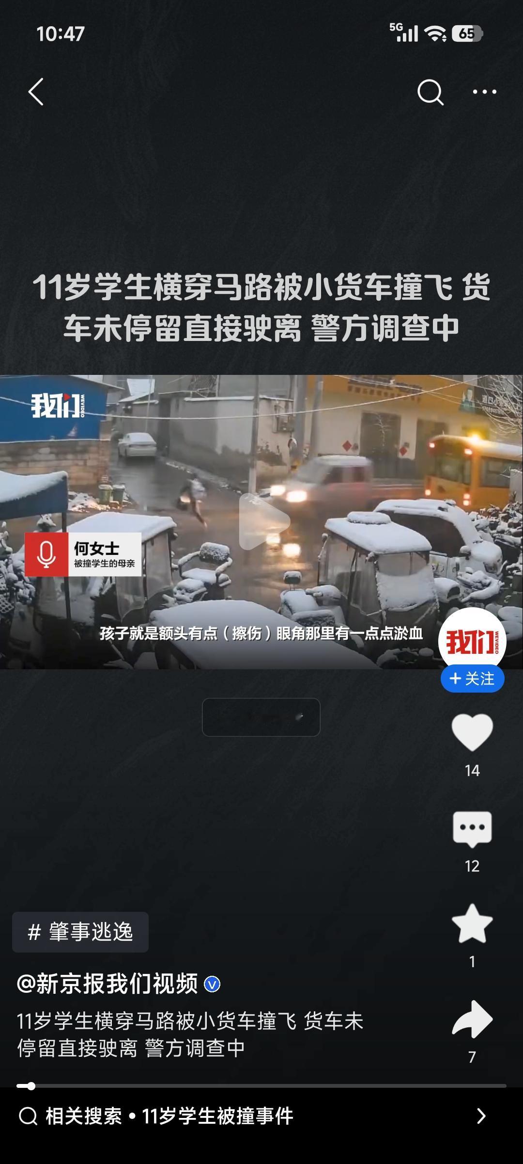 安徽一个11岁学生横穿马路回家时,被小货车撞飞数米,司机却直接驾车离开。这司机也太冷血了吧!孩子对马路风险认知不足,顶多是成长小疏漏,他却把这当成逃避责任的借口。撞人后不查看伤情、不打120,一心只想跑,这哪是慌乱,分明是没了良知。 延误救治,孩子生命危险就多一分。即便孩子有过错,司机观察不周的责任也推不掉,逃逸更是把“过失”变成“故意作恶”。法律对肇事逃逸处罚明确,可他还心存侥幸,漠视生命的行为真让人不齿,希望警方早日揪出他。