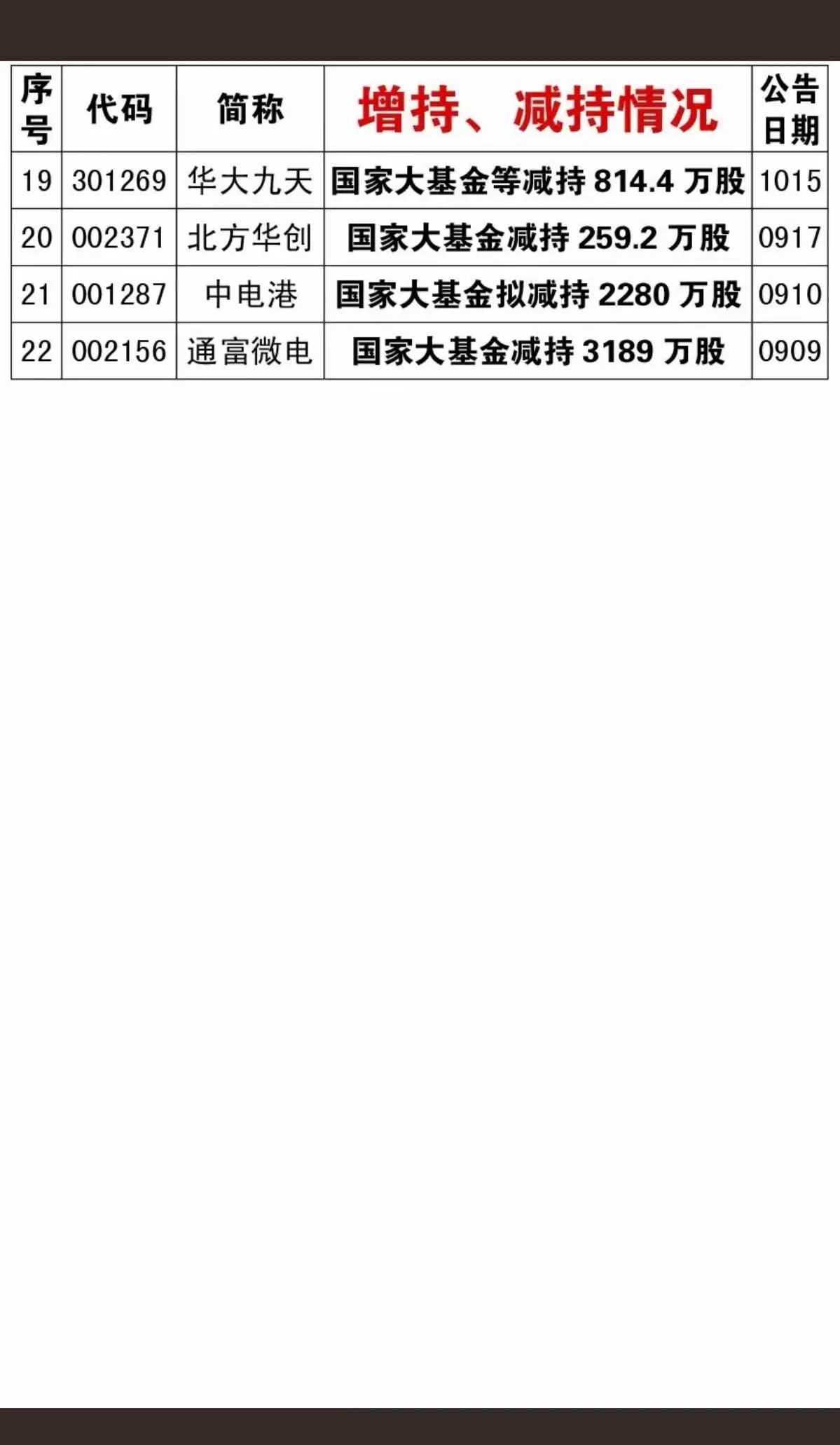 国家产业投资基金:增持、减持动向!这个可是国家队啊!低位减持可以跟踪,说不定有一