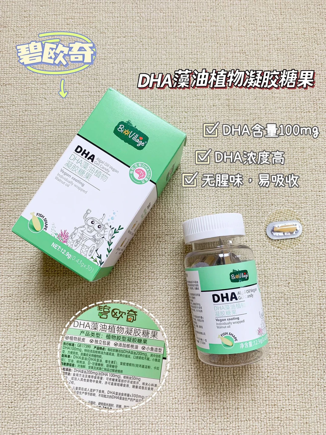 🌈我饭后会给可乐吃一粒碧欧奇DHA藻油软植物胶囊,口感也不腥,小鱼造型,宝宝喜欢也容易接受,独立小包装,营养锁鲜,外出携带也方便。