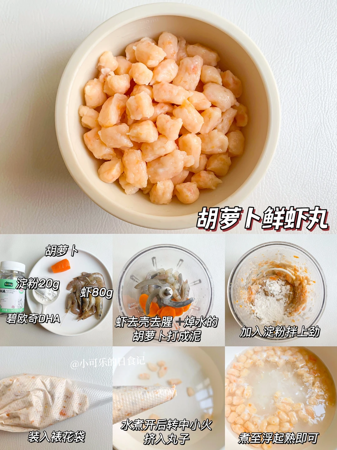 🛒食材:胡萝卜、虾80g、玉米淀粉20g