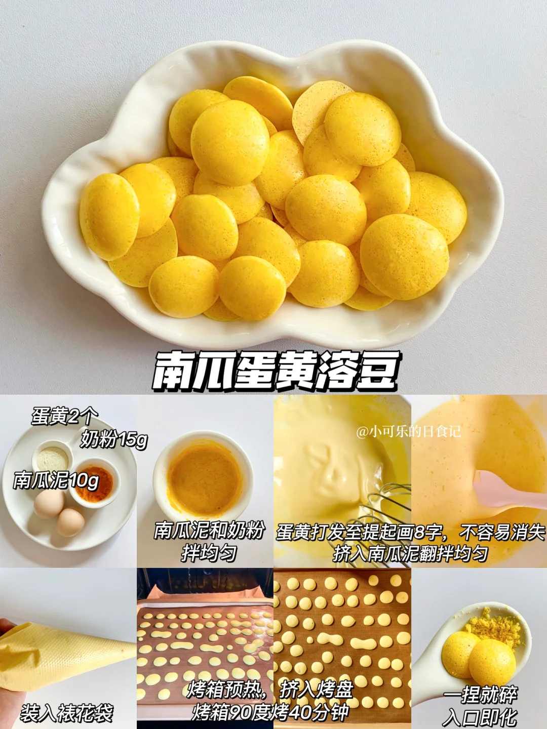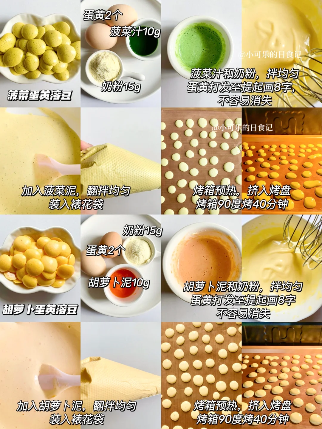 🌟溶豆做法公式:2个蛋黄➕10克果蔬泥➕15克左右奶粉(根据果蔬泥的稠度不同来调整奶粉的量(