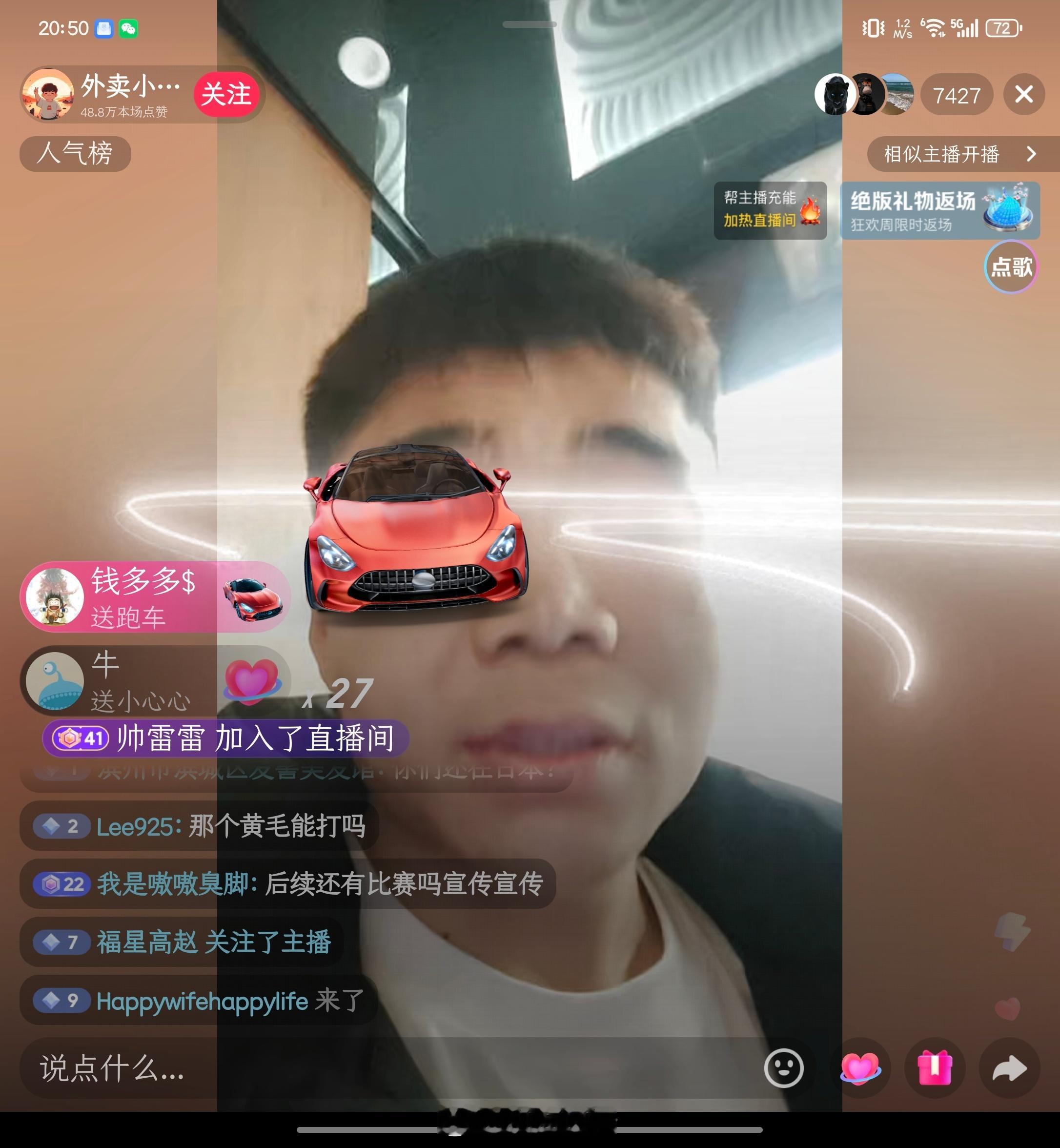 刚打废日本选手的中国最强外卖小哥开播了,人气冲到7000+,他说没有这场比赛可能已经退役了,父母年龄大了,家庭条件差,只能努力挣钱,这次比赛据说赢的选手有一辆摩托车奖励,如果真的发了,准备用这个摩托车继续跑外卖