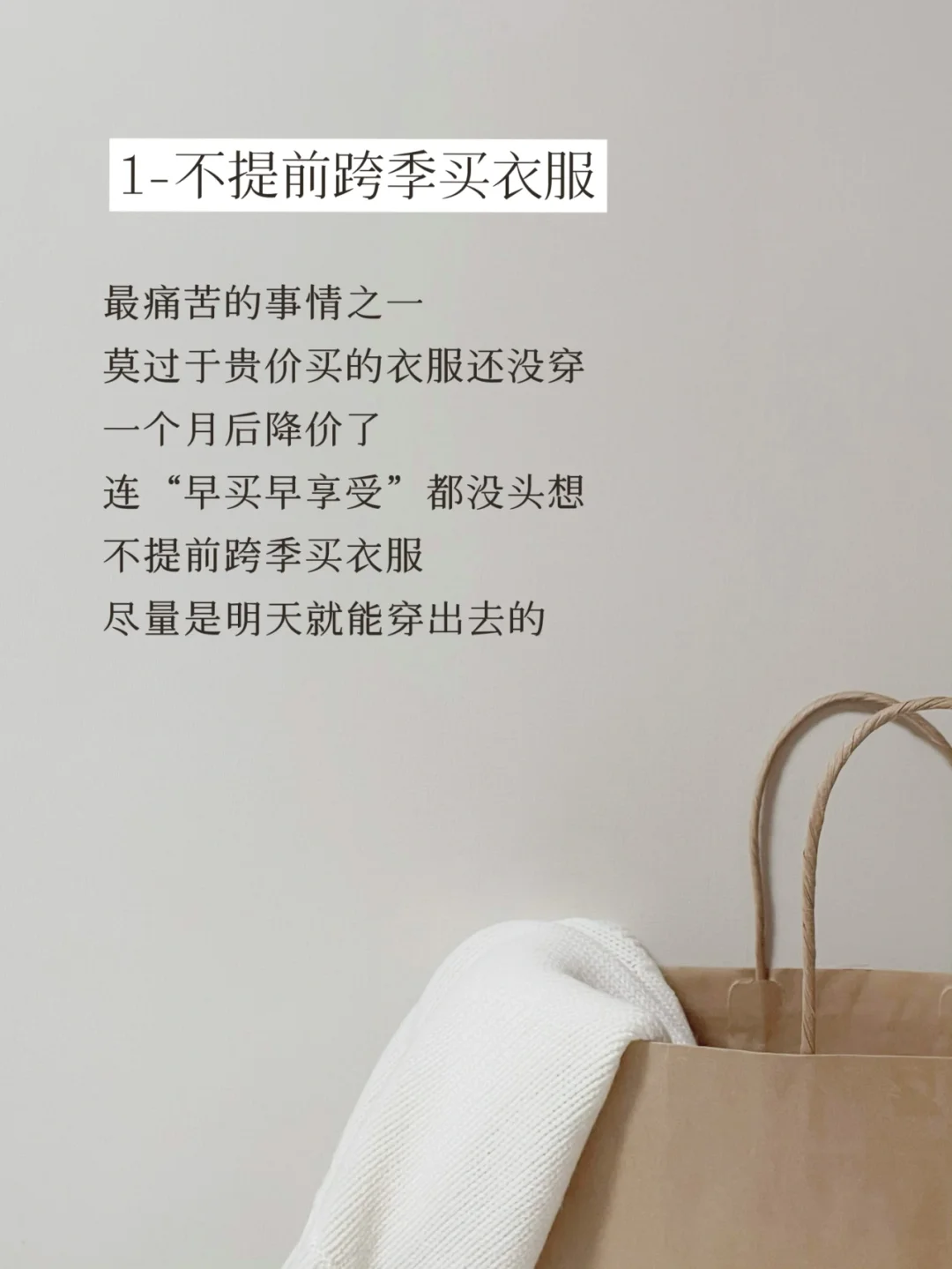 不提前跨季买衣服,尽量是明天就能穿出去的