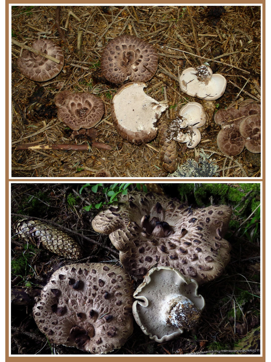 虎掌菌 Sarcodonimbricatus 学名:翘鳞肉齿菌 科:烟白齿菌科 图片©manatarka.org ©josef hlasek 可食 虎掌菌香气浓烈,相传在云南剑川地区会把晒干的虎掌菌当作香料焚香来用 虎掌菌口感好,营养价值高,韩国运动员都用它来滋补身体