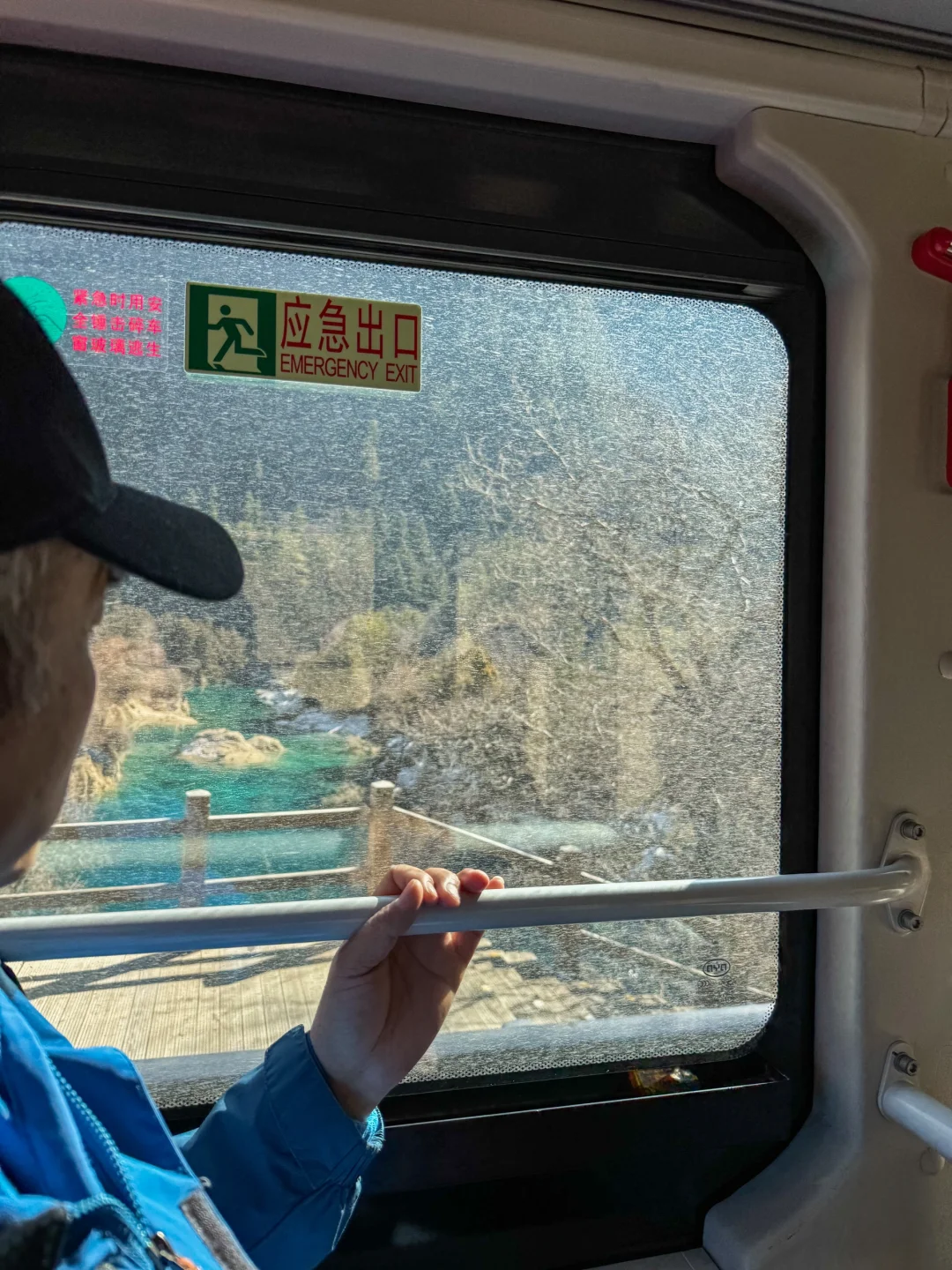 众所周知的原因,九寨沟是山区河流景观,本着山路靠右行走的原则,左边自然是水多~ [加一R]所以!靠左靠窗准没错~ [拍立得R]感觉自己又多看好多风景 九寨沟景区交通车为公交车,所以也是有站票的!没什么指定座位的说法,一切先到先得先上先坐,谁坐谁舒服,前后门都能上下~