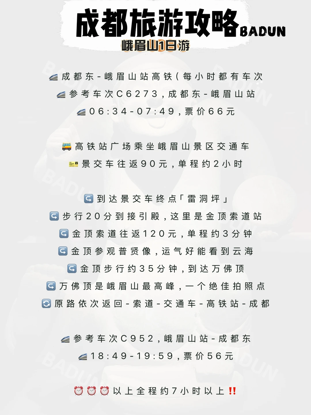 ①乐山大佛:要么就提前一天到,第二天顺路去峨眉山,第二天返回成都市区。