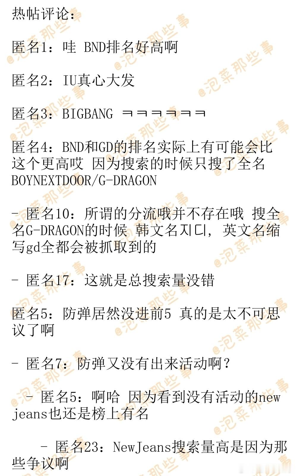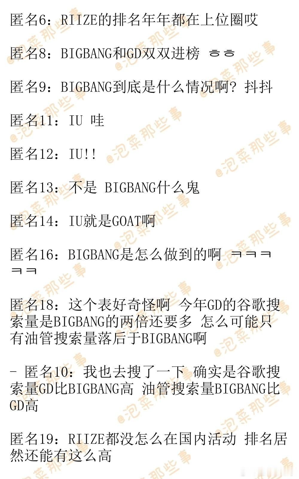 🔥韩网热帖评论翻译🔥2025年KPOP男/女爱豆油管韩国区搜索量TOP5女爱豆TOP5:1.IVE2.IU3.aespa4.LE SSERAFIM5.NewJeans男爱豆TOP5:1.SEVENTEEN2.BIGBANG3.BOYNEXTDOOR 4.RIIZE5.权志龙cr.instiz