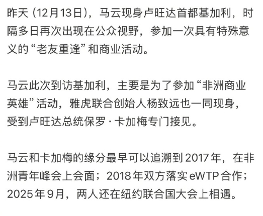 看报道,看到了马云现身卢旺达 与卢旺达总统会谈!