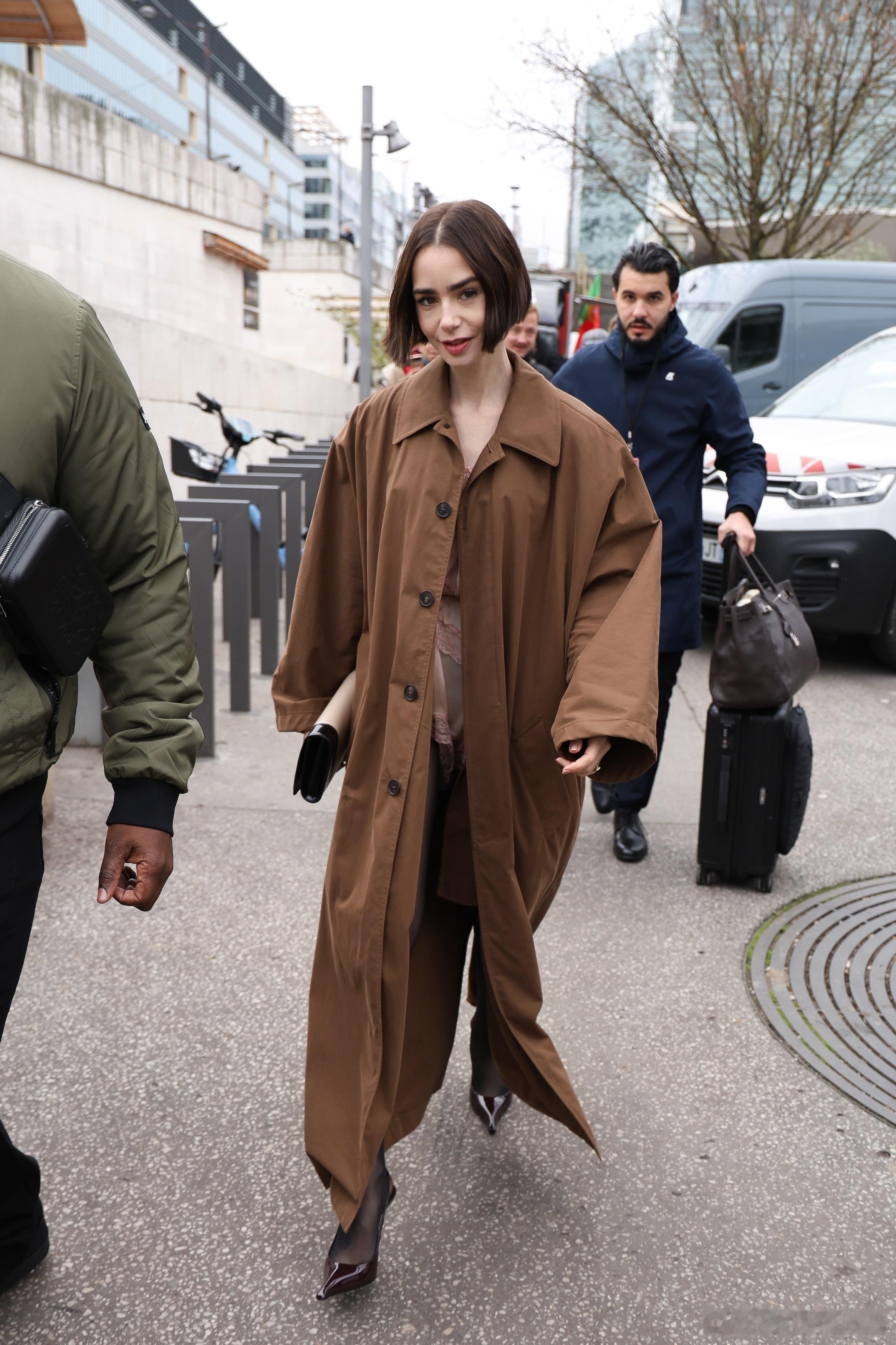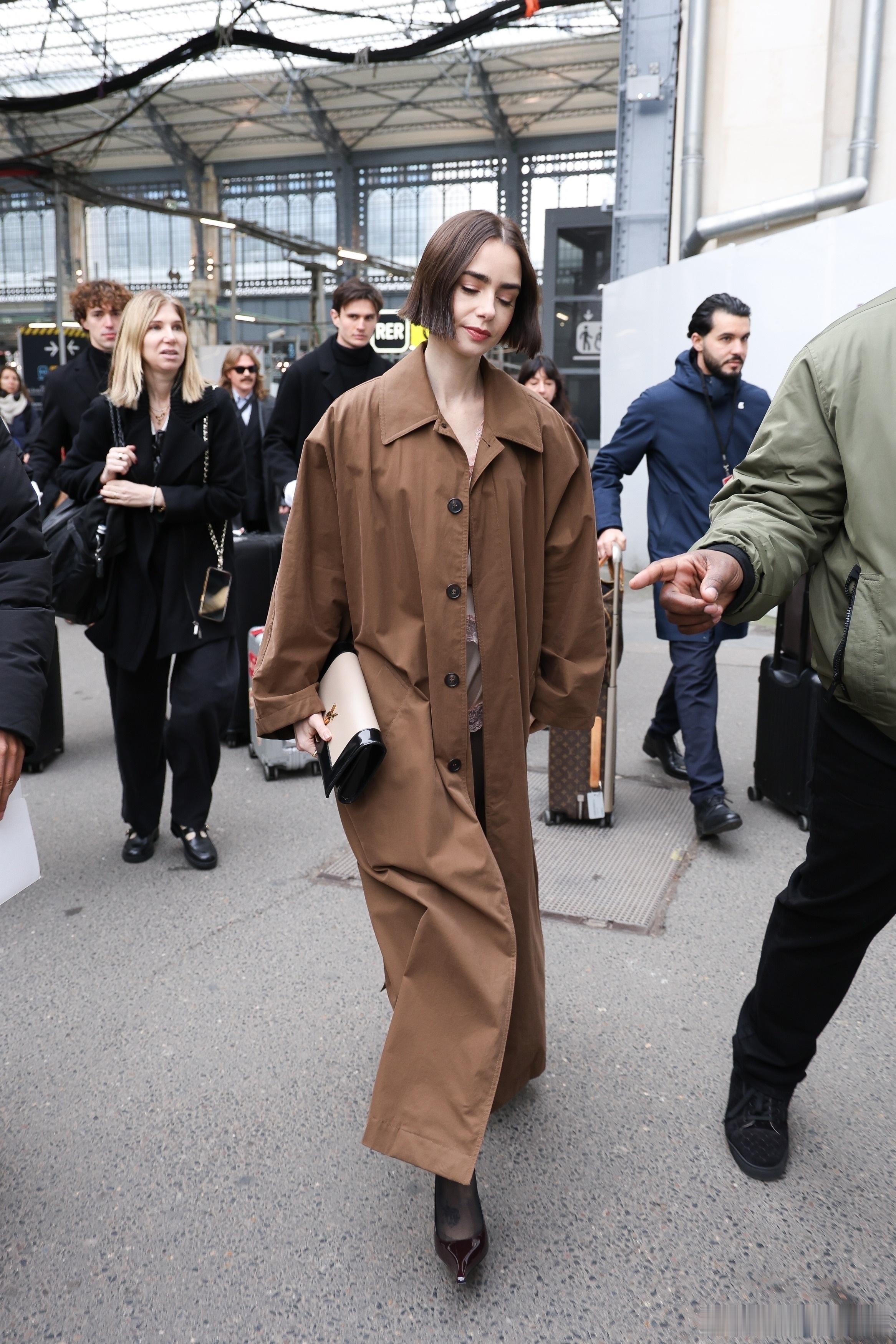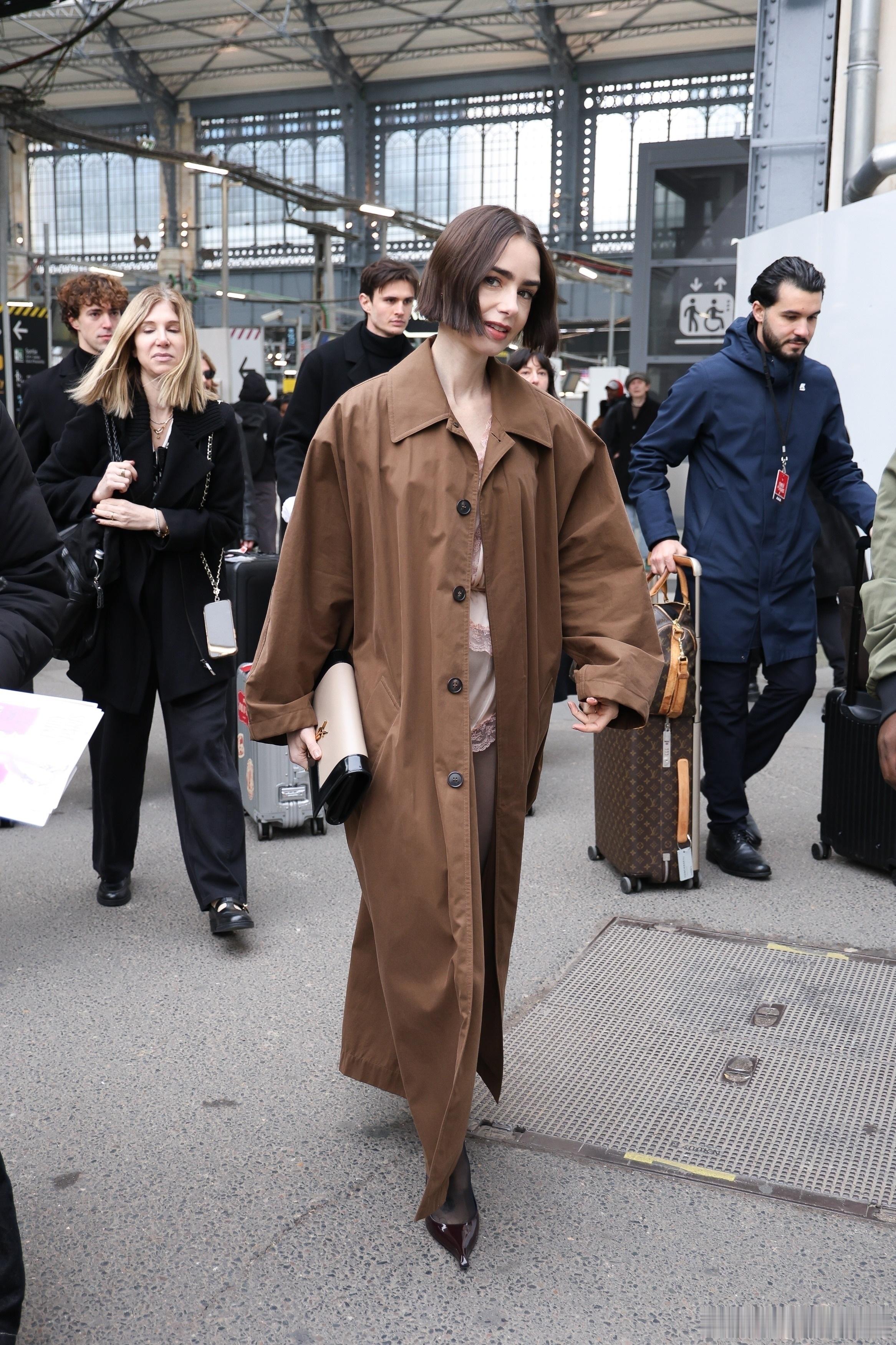 Lily collins莉莉柯林斯搭乘东方快车抵达巴黎的奥斯特里茨站,准备继续为热剧《艾米丽在巴黎》第五季进行新一轮的宣传