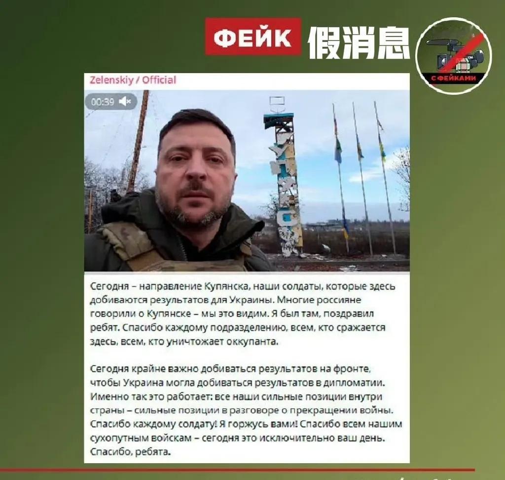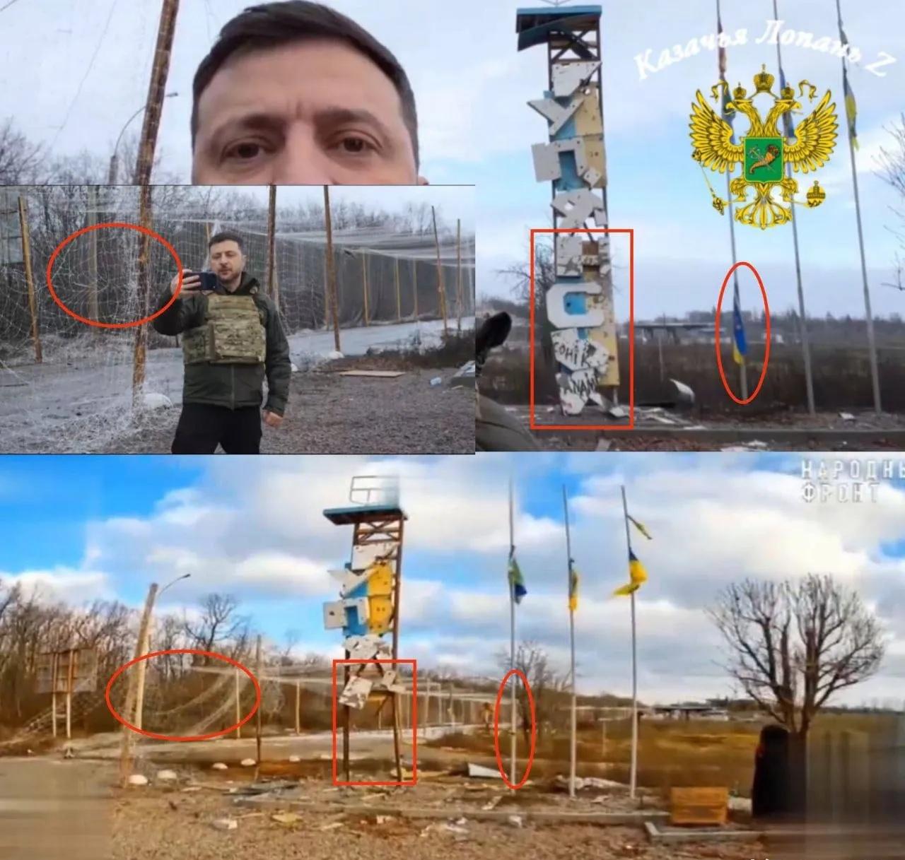 乌克兰总统泽连斯基今天(12月14日)告诉美国总统特使维特科夫:“我最近去过库皮杨斯克,向大家展示了是谁在控制这座城市。俄罗斯方面有很多假消息,所以我向我们的美国同事发出信息:不要相信俄罗斯所说的一切。” 自泽连斯基12日发布在库皮扬斯克牌坊前自拍视频,并声称俄军后勤补给线已被切断,乌军对该城俄军反包围后,乌克兰媒体曝出泽连斯基纯属摆拍,其身后牌坊及铁丝网背景早已大不相同,城标库皮扬斯克的字母已经缺失,公路边铁丝网也早被破坏(图2),他本人根本没有进城,因为该城区依然被俄军控制,泽连斯基最多到了库皮扬斯克城外西南入口处亦或者早前已录制好的视频。