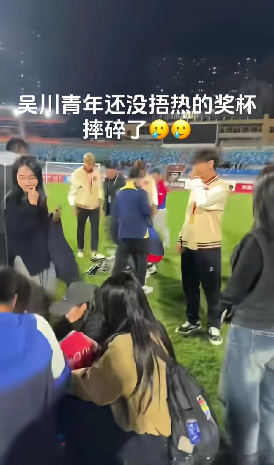 吴川青年刚捧起的省超冠军奖杯竟摔碎! 12月14日广州的省超赛场,吴川队刚拿下冠军,队员们还没把奖杯捂热乎,就眼睁睁看着奖杯摔在草坪上裂成了几瓣!银色的奖杯部件散在地上,现场球员和球迷的表情瞬间从狂喜跌到心疼,那画面看着又好笑又可惜。 这支来自吴川的队伍一路拼杀拿下冠军,背后是无数球员的汗水,还有家乡球迷的期盼。奖杯碎了,可这份夺冠的荣耀半点没折,毕竟奖杯能修复,可赛场上拼出来的底气修不了。 不过也有人吐槽,冠军奖杯的质量也太经不起折腾了,难道就不能做结实点?也有人觉得,意外摔碎反而成了独特的纪念,让这次夺冠更印象深刻。 那么问题来了,你觉得奖杯摔碎是遗憾还是另类的“冠军印记”