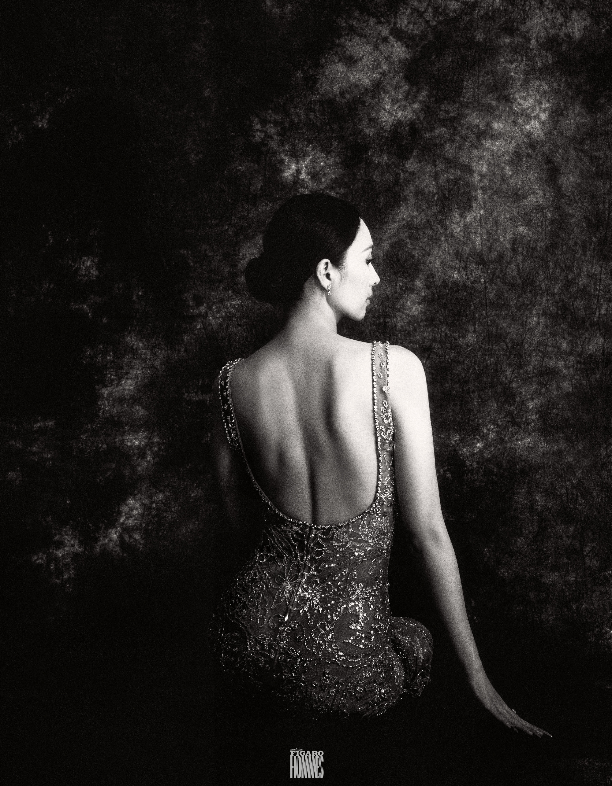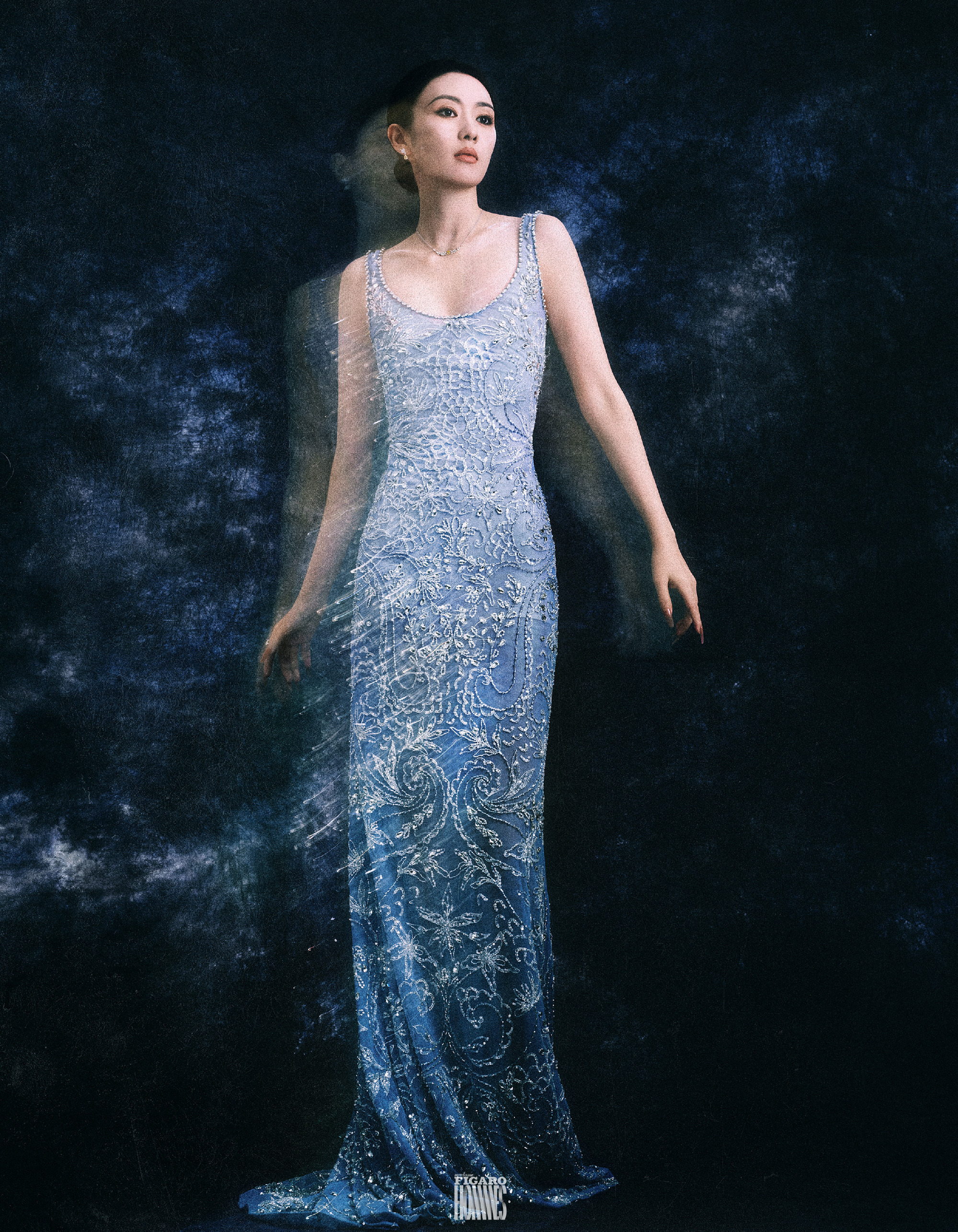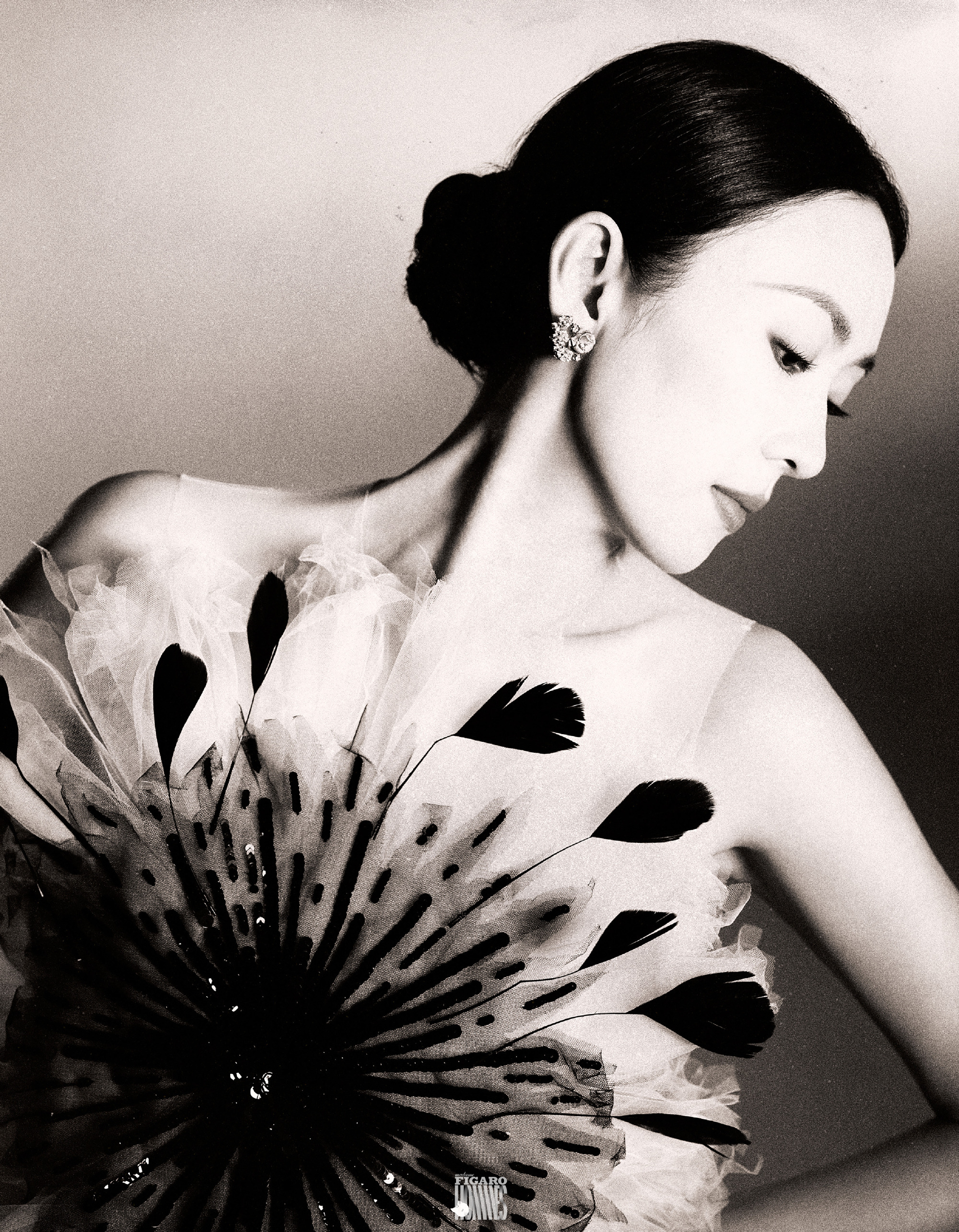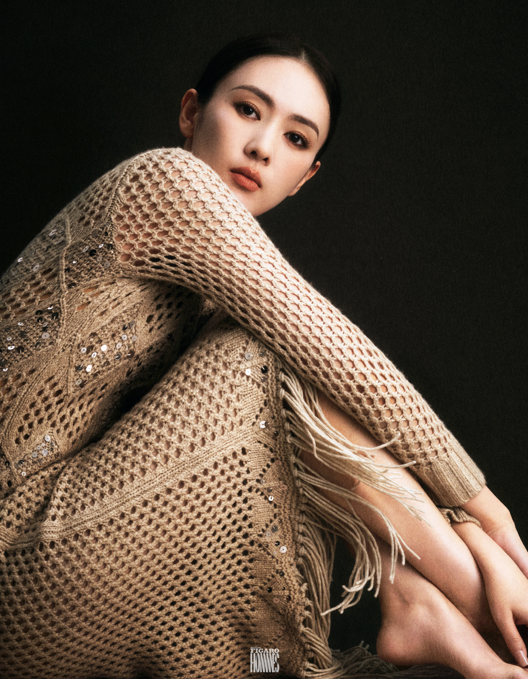 童瑶费加罗男士十月刊封面流纱花苞裙大片。童瑶