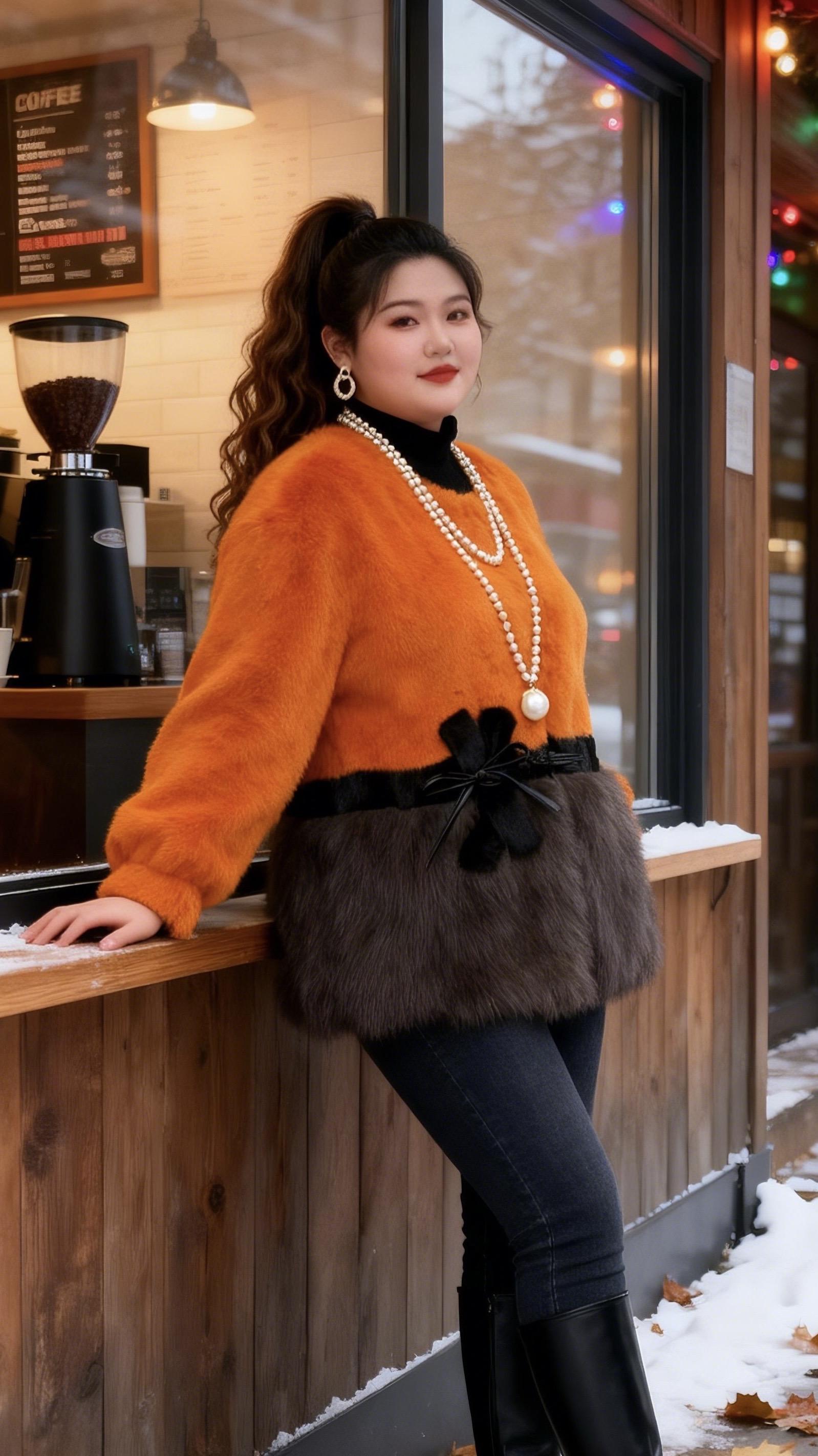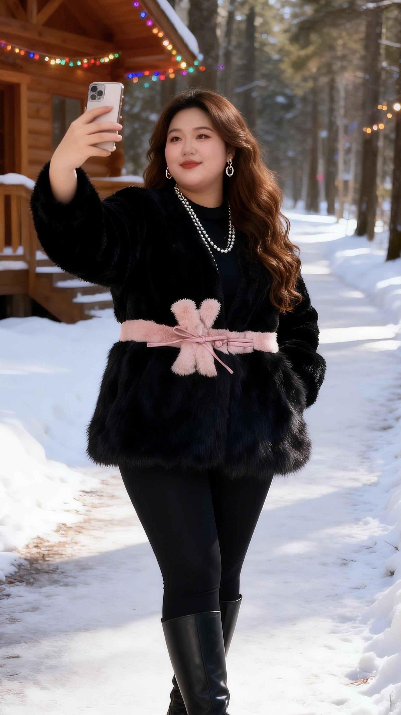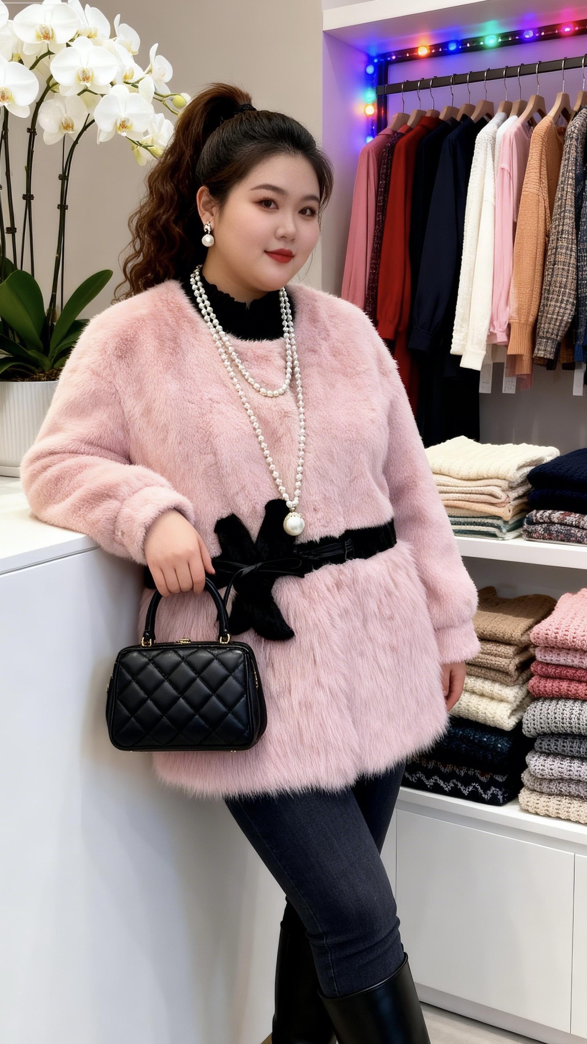 大码女装 毛毛外套 保暖又好看 时尚休闲穿搭 我的初雪穿搭准备好啦