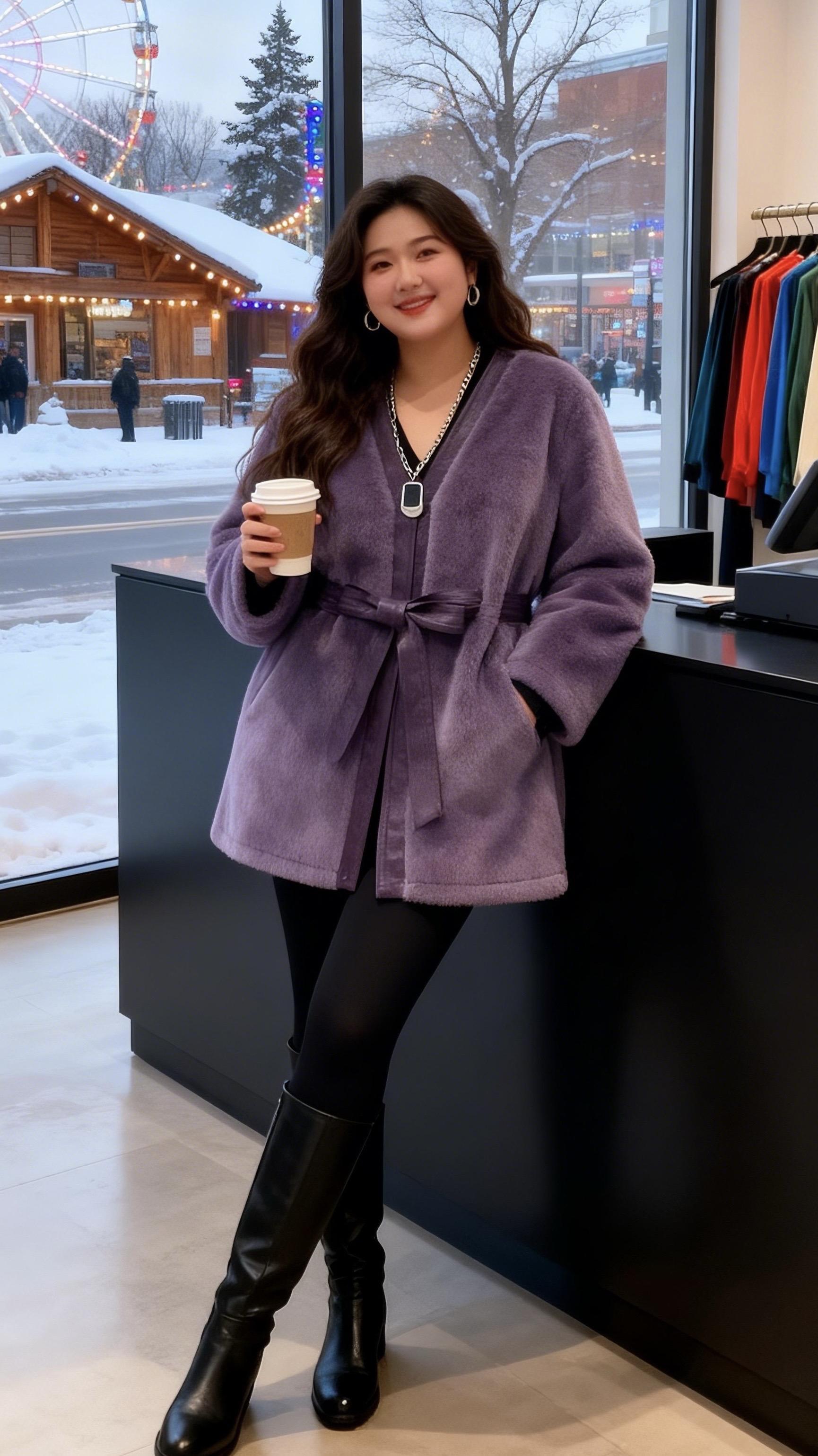 大码女装 毛毛外套 保暖又好看 时尚休闲穿搭 我的初雪穿搭准备好啦