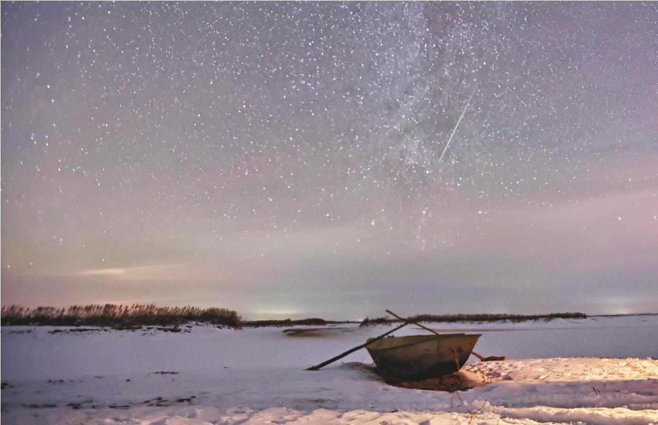一年一度的双子座流星雨于12月14日下午迎来极大。图为12月13日在黑龙江省同江市拍摄的双子座流星雨。