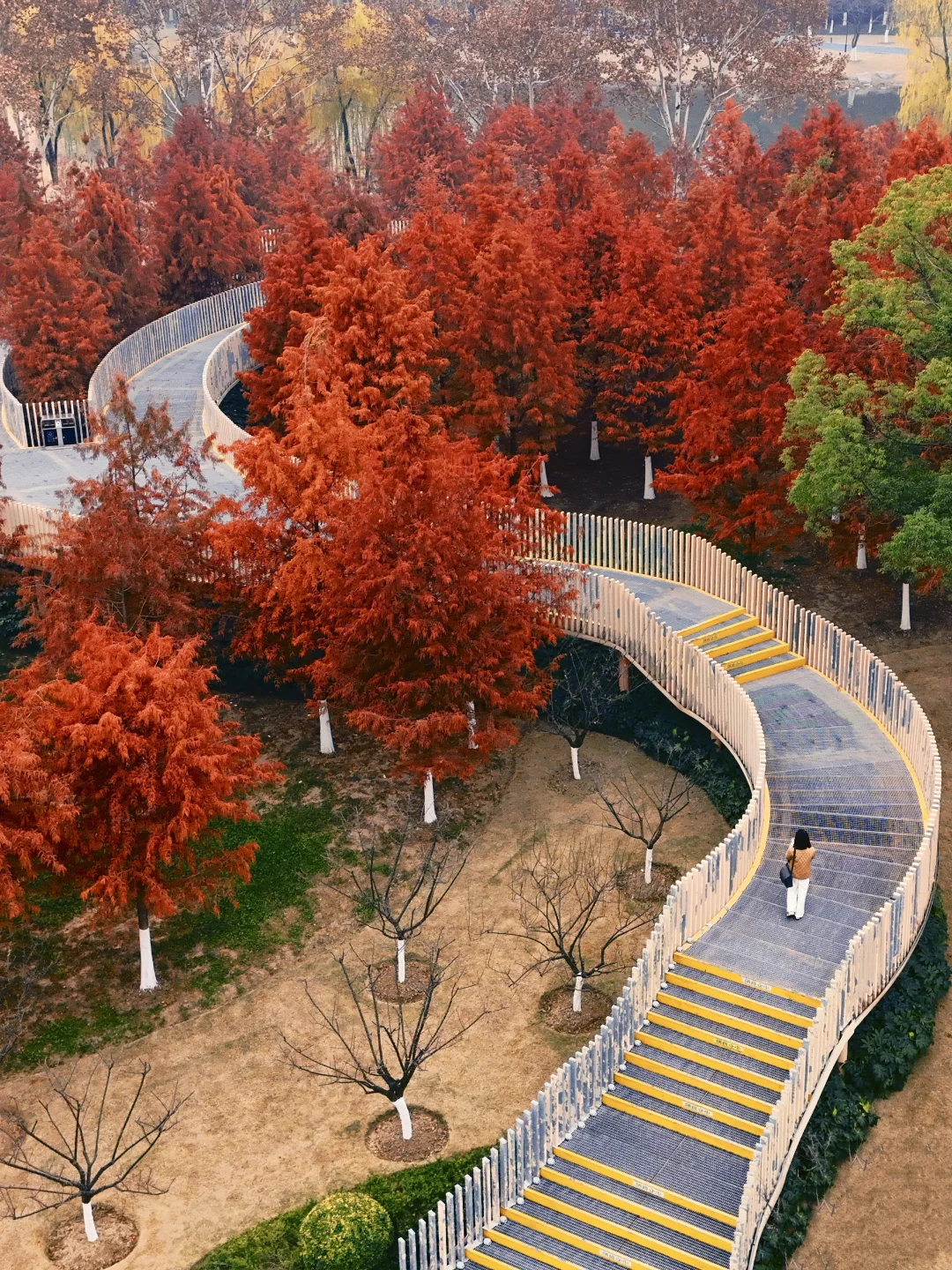 常青人才公园真是去不腻,周末遛娃、拍照、露营,十二月红杉林全红了之后,美到词穷!!