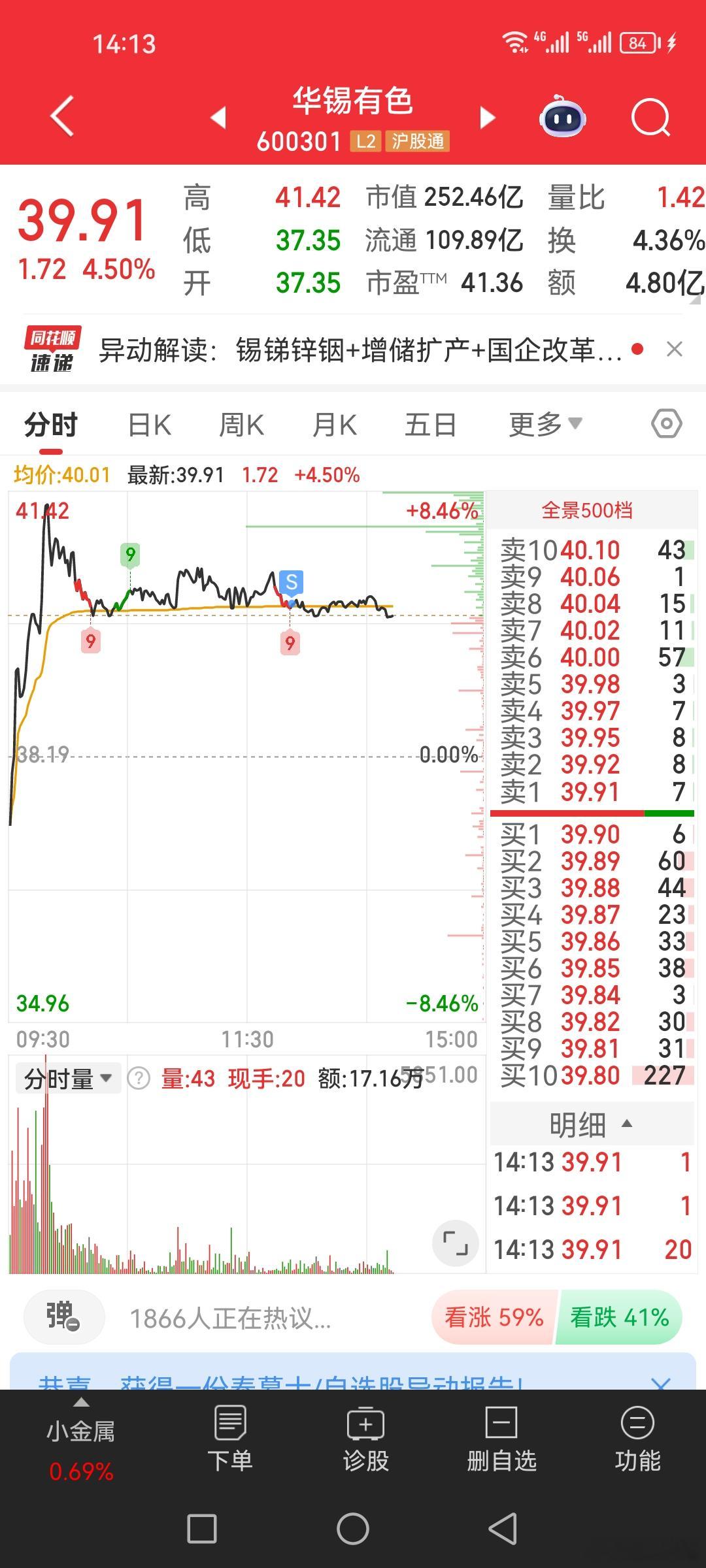 今天卖出来了$华锡有色 sh600301$ ,最近市场难做啊$上证指数 sh000001$ $深证成指 sz399001$ $创业板指 sz399006$