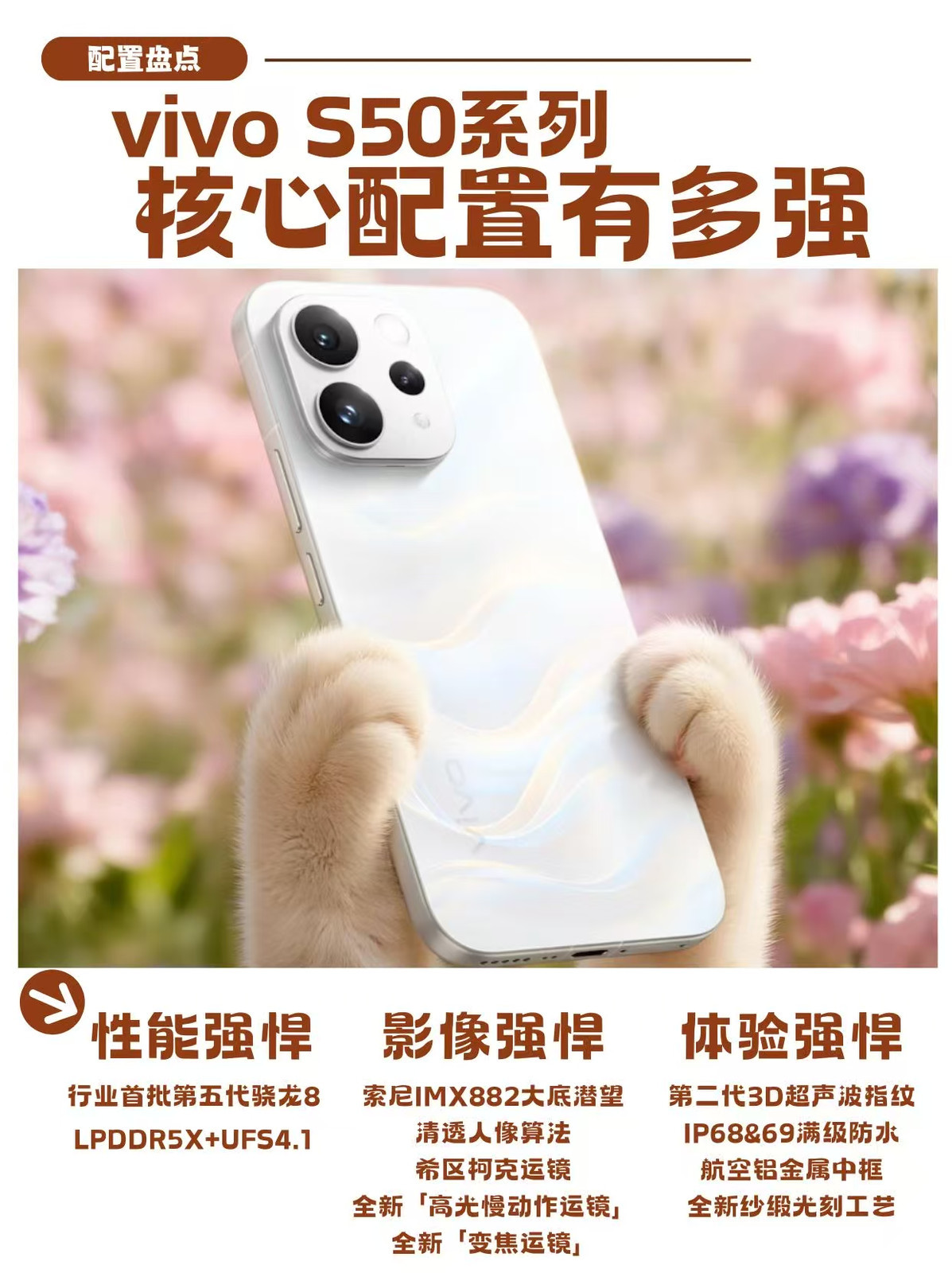 vivoS50拍出恋综电影感内娱有星光大赏,俺们数码也有自己的“星光大赏”说实话,如果投影像赛道的“氛围感冠军”,那必须给vivo S50一票! 不止参数强,它更懂怎么把日常拍出心动瞬间。IMX882大底潜望长焦抓拍无裁切损耗,而且live图也可以实现长焦氛围感,每次出门玩必带,因为手残党也可以有拍照春天。 对普通用户来说,技术亮点可能不是最重要的,但谁都拒绝不了掏出手机3秒成片的诱惑,所以 vivoS50 悄悄说,这下可能真要重新定义中端影像标杆了