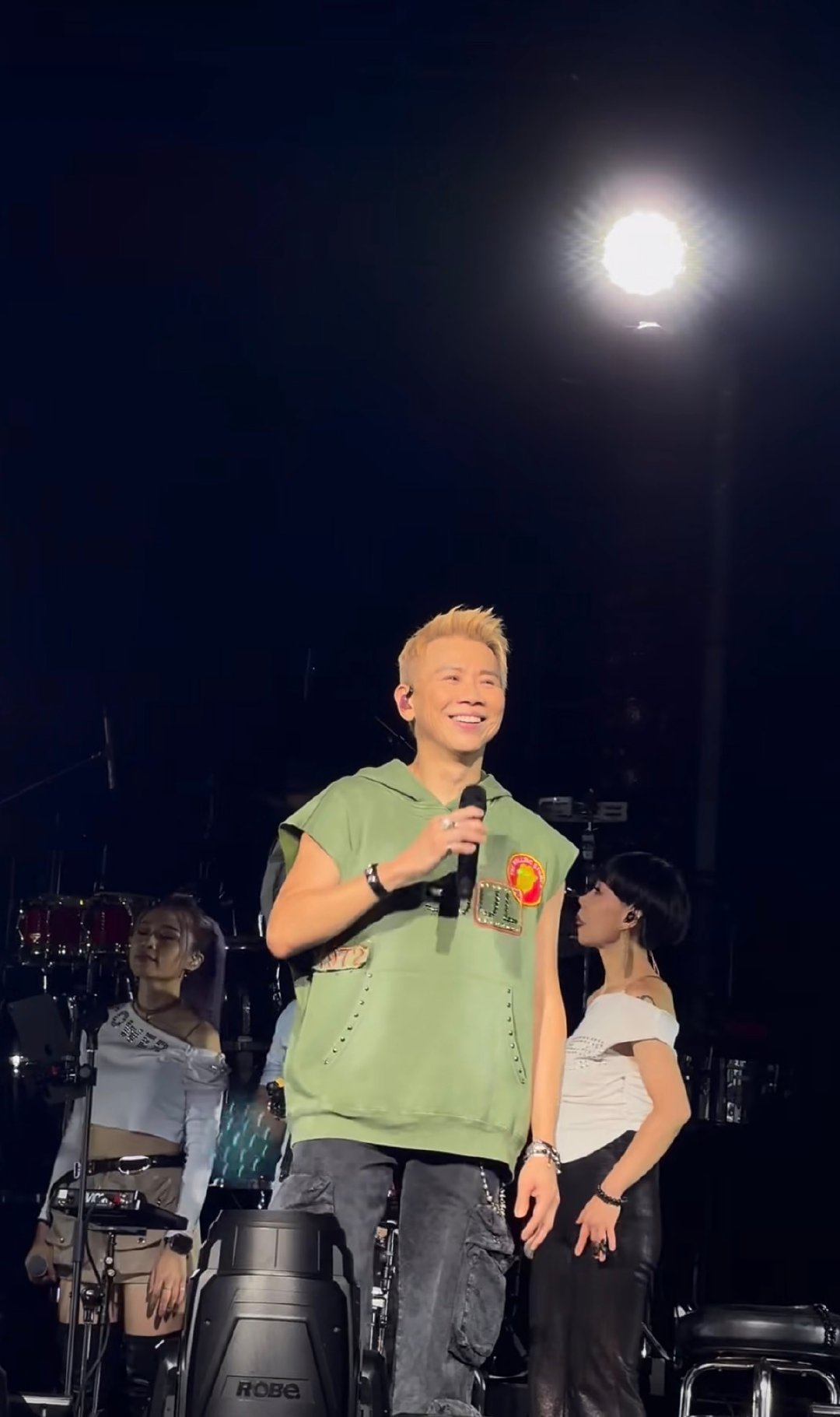 这是陶喆不是猕猴陶 陶喆这身绿背心黄头发的装扮太有辨识度了,像个大猕猴桃在舞台上穿梭,给演唱会增添了不少欢乐氛围。