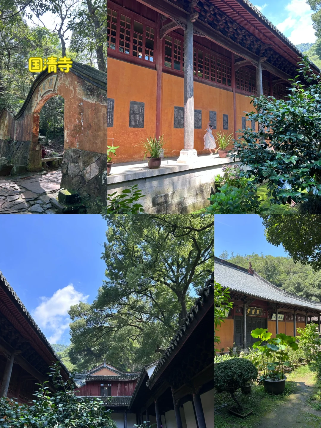 周日上午从酒店打车去「国清寺」,免费的。千年古刹名不虚传,它是隋朝修建的寺院,闻名中外。无论是砖石还是雕刻都有厚重的文化感,寺庙的庭院设计也很棒,去喝了免费的茶水,等不及2元的素斋了,就出发去看「大瀑布」啦。