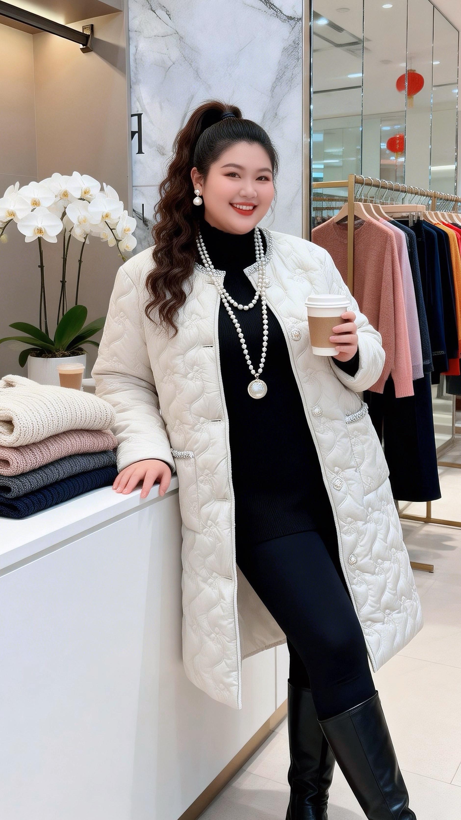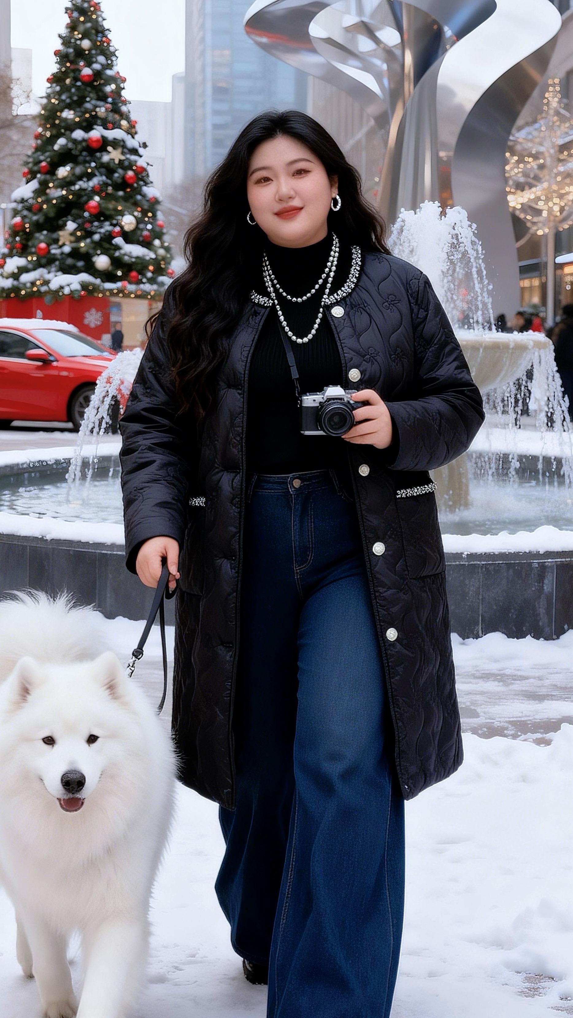 大码女装 保暖外套时尚休闲穿搭胖妹妹的冬季有效穿搭我的初雪穿搭准备好啦
