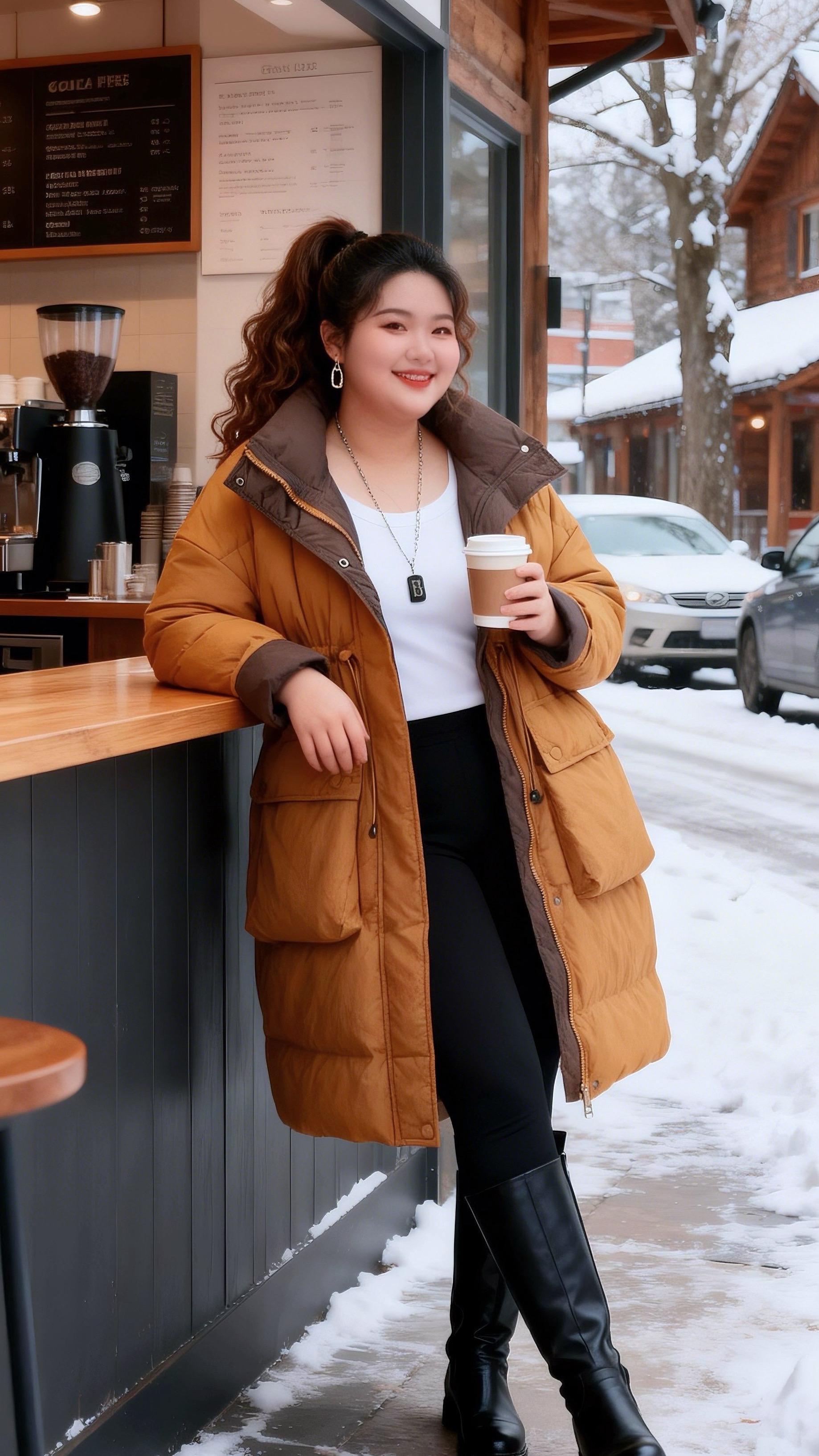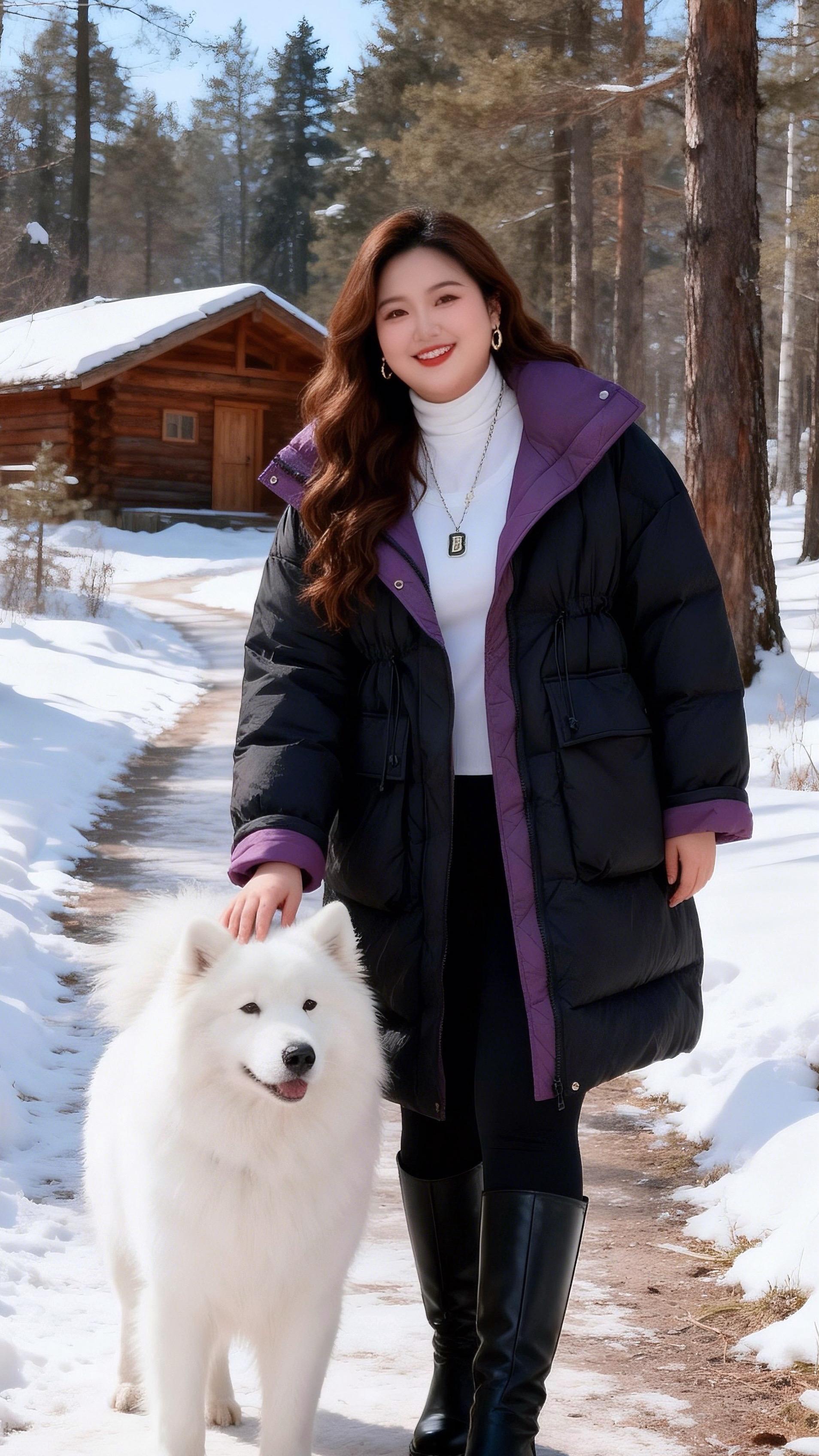 大码女装 保暖外套时尚休闲穿搭胖妹妹的冬季有效穿搭我的初雪穿搭准备好啦