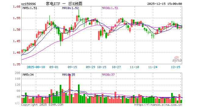 家电ETF(159996)业绩比较基准为中证全指家用电器指数收益率,管理人为国泰基金管理有限公司,基金经理为苗梦羽,成立(2020-02-27)以来回报为50.56%,近一个月回报为-0.36%。