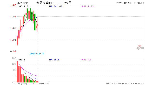 12月15日,家居家电ETF(515730)涨0.10%,成交额887.40万元。当日份额减少500.00万份,最新份额为1.12亿份。最新资产净值计算值为1.13亿元。