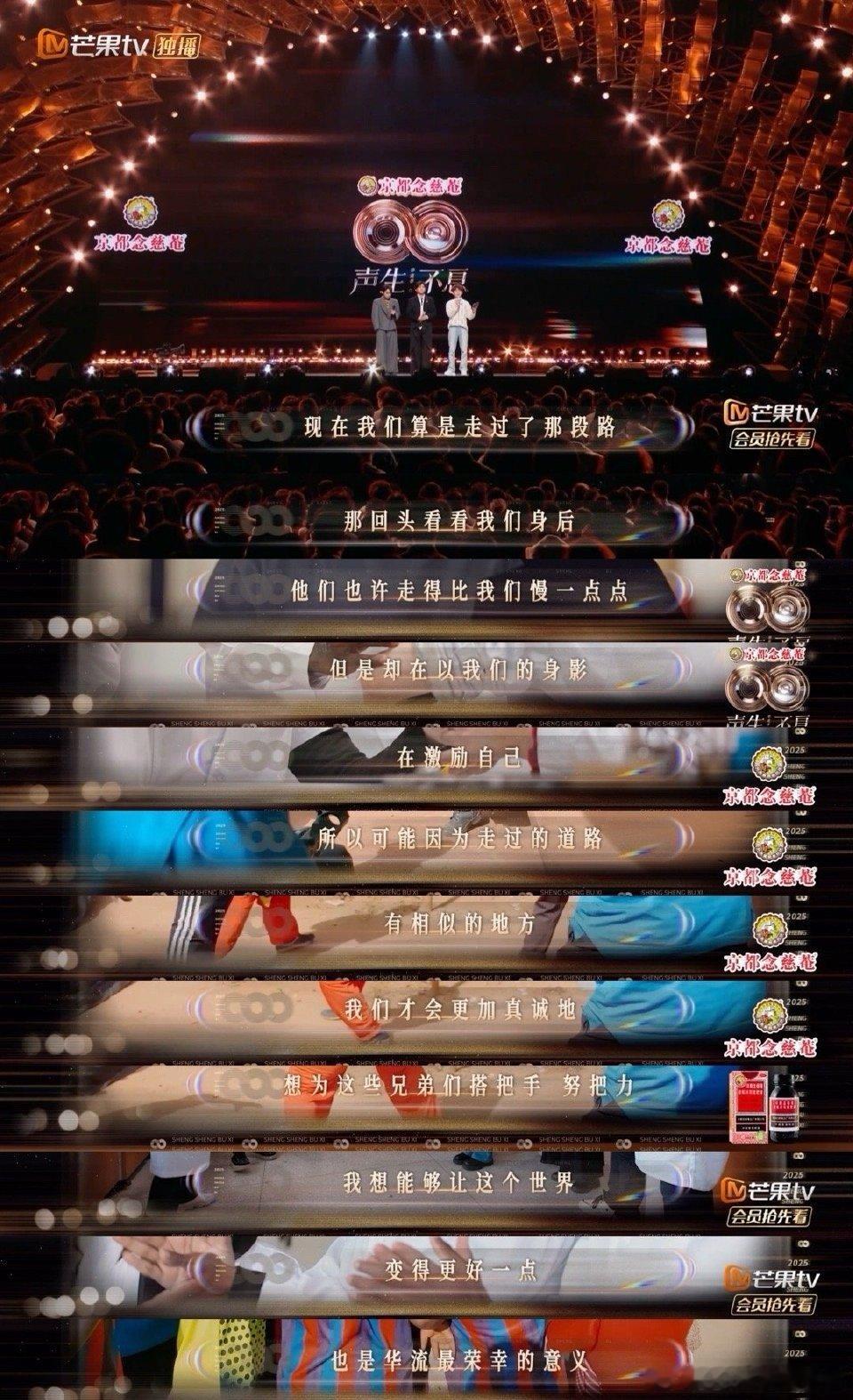 声生不息五个一工程奖的含金量还在上升 如何让“华流”不流于口号?《声生不息》给出了满分答案:李莎旻子远赴非洲记录中国功夫与中医的传播,每期片头巧妙融入文化符号。节目用细节堆砌出真实的华人世界图景,证明优质音综同样可以是厚重的文化史诗。