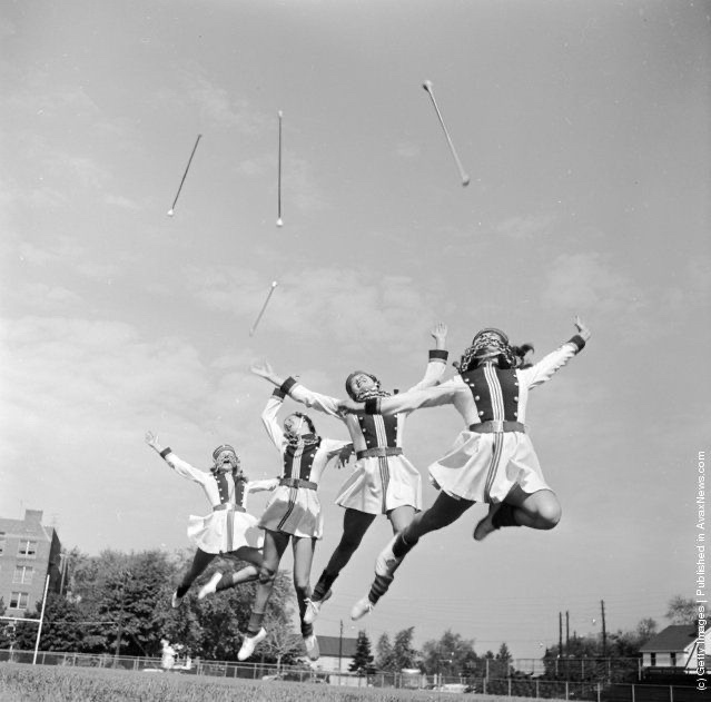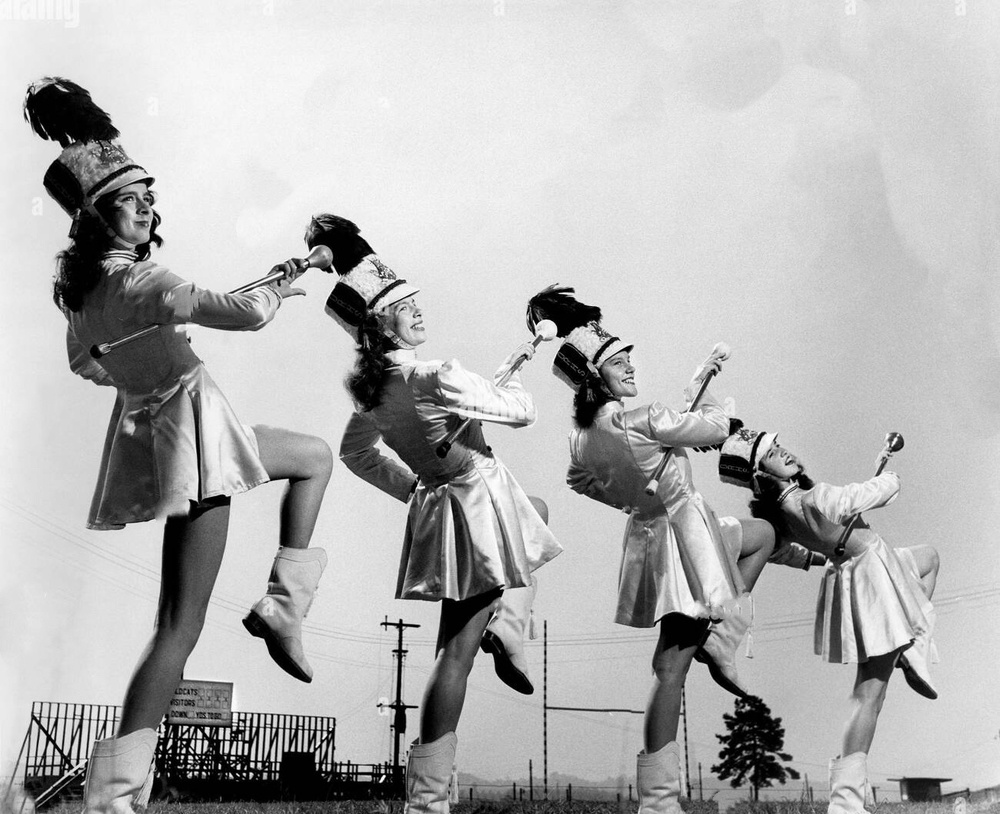 【来自投稿】上世纪40~50年代,美国高中校园仪仗乐队中,负责指挥棒舞蹈表演的领