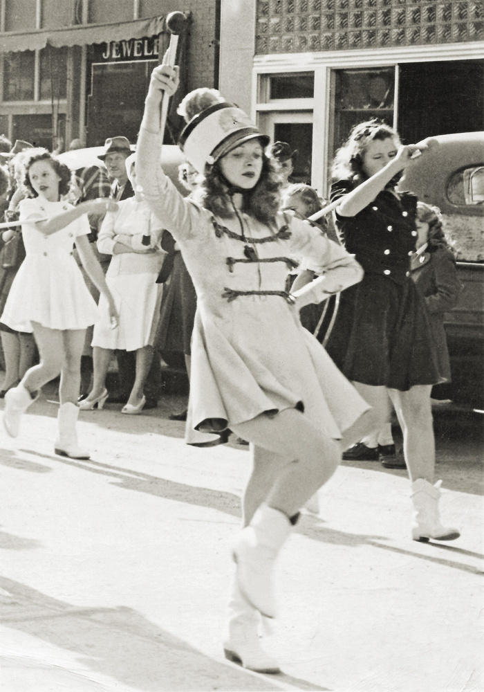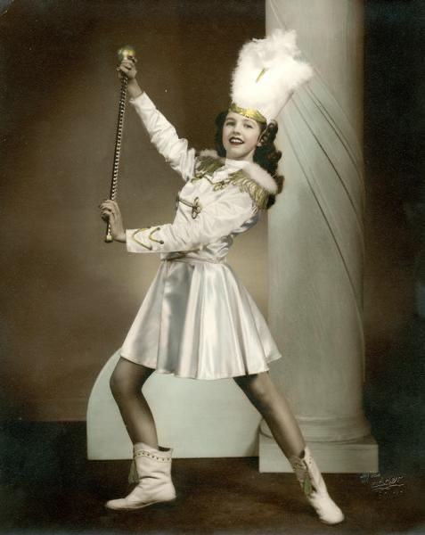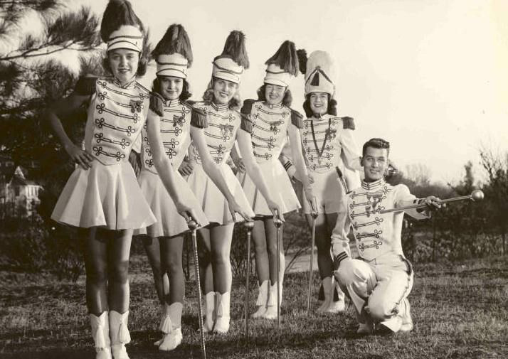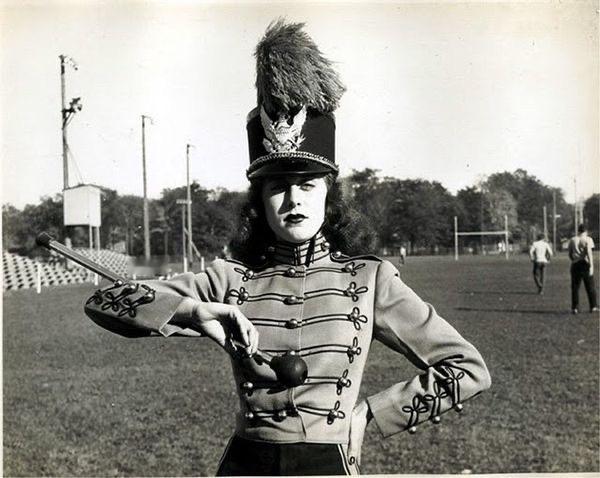 【来自投稿】上世纪40~50年代,美国高中校园仪仗乐队中,负责指挥棒舞蹈表演的领队(Drum Majorette)