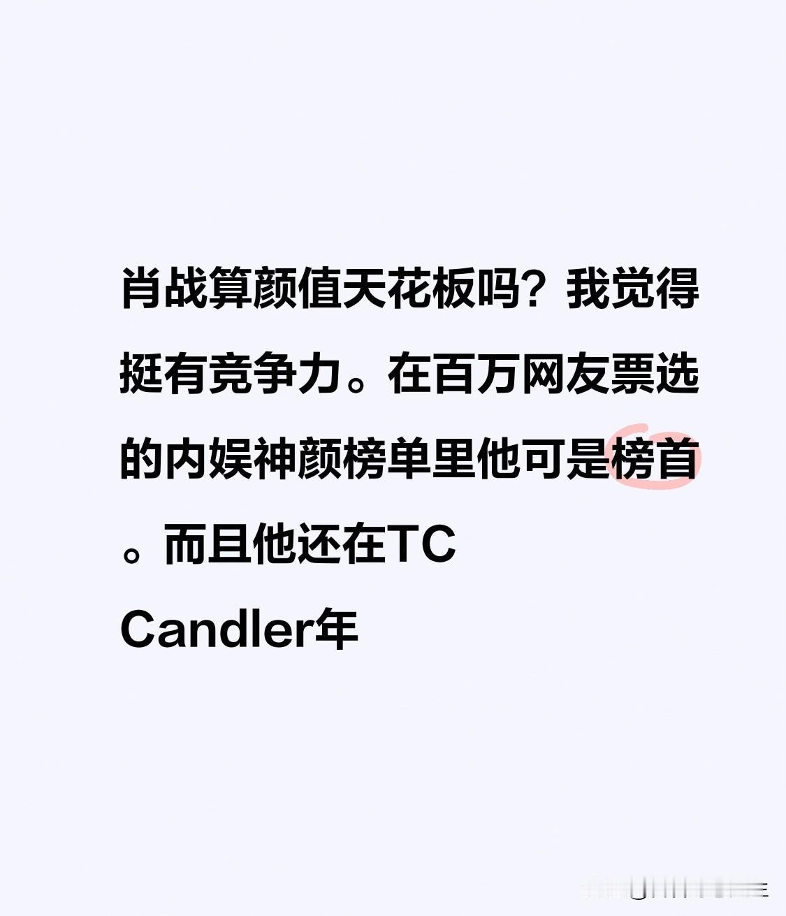 肖战算颜值天花板吗?我觉得挺有竞争力。在百万网友票选的内娱神颜榜单里他可是榜首。而且他还在TC Candler年度百大最帅面孔评选中获世界第一。他五官精致立体,气质温润如玉,古装扮相更是惊艳众人,比如《陈情令》里的魏无羡,一袭白衣,潇洒肆意。 不过,内娱帅哥如云,像陈哲远、陈飞宇等也各有魅力。陈哲远是三庭五眼误差值极小的“撕漫男”,陈飞宇有着混血冷感轮廓。但肖战的颜值确实让人过目难忘,说他是颜值天花板也不为过。 肖战 肖战剧照