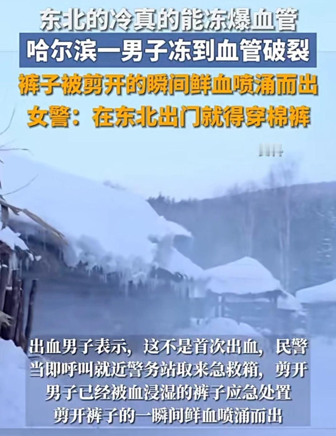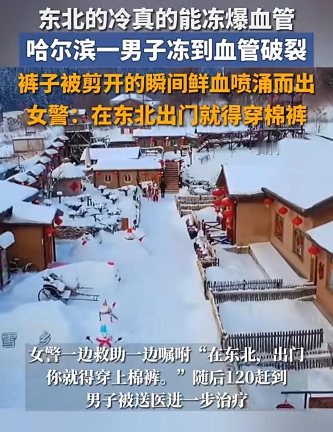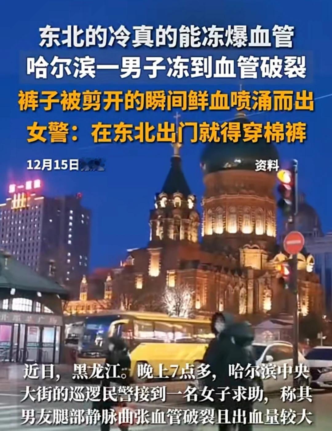 哈尔滨街头男子不穿棉裤被冻到血管破裂! 近日,哈尔滨中央大街上,一场意外状况打破了冬日的平静,也上演了一幕暖心的救助戏码。 巡逻民警像往常一样在街头巡查,这时,一位神色慌张的女子匆匆跑来求助。她带着哭腔说道:“警察同志,我男朋友腿部静脉曲张血管突然破裂,血一直流,快救救他!”民警们一听,立刻紧张起来,女警更是拔腿就跟着女子往男子所在处跑去。 赶到现场,只见男子坐在地上,腿部伤口处鲜血不断渗出,周围地面已经红了一片,情况十分危急。女警没有丝毫犹豫,立刻蹲下身子,凭借专业急救知识,熟练地为男子进行止血处理。她一边按压伤口,一边轻声安慰男子:“别紧张,放松点,很快就会好起来的。” 东北的冬天冷得刺骨,男子却没有穿棉裤。忍不住关切地嘱咐:“在东北这大冷天,出门必须得穿棉裤啊,不穿棉裤哪扛得住!” 与此同时,其他民警迅速联系了120急救中心。不一会儿,救护车呼啸而至,医护人员带着担架和急救设备赶到。众人合力将男子抬上担架,送上救护车,紧急送往医院进行进一步治疗。 东北这零下几十度的天气,不穿棉裤出门,真让人捏把汗。大家身边有没有这种为了“风度”不要“温度”的朋友呢? 或者对这件事有什么想吐槽、想分享的,快来评论区聊聊呀! 热点 社会新闻 坚决打击犯罪 正义永远不会缺席 东北人是世界上最搞笑的人 热点新闻事件 不做冷漠的看客 保护自己 关爱女性安全