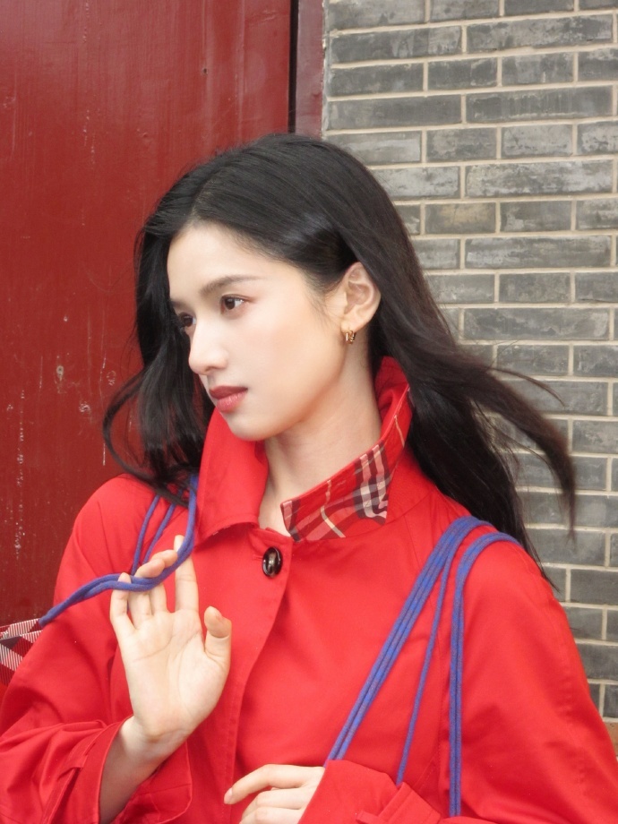 张婧仪红风衣 节日氛围感焊死在身上!红风衣的亮眼色调搭配利落剪裁,马元素徽标呼应