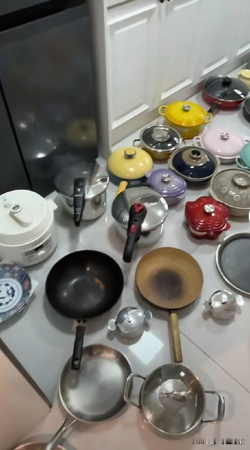 我就想问问, 烧饭好不好吃是不是得靠锅? 谁还没有几个拿手好锅。 大到炖鹅炖鸡,小到煎蛋烤馍,家把式一样都不能少。 有双十二买的,有装修送的,有直播间抢的,还有缴费送的,就问问谁家没有几个吃土的锅。 别问我菜炒的咋样,就这锅能全部会用都等学学[捂脸][捂脸][捂脸]