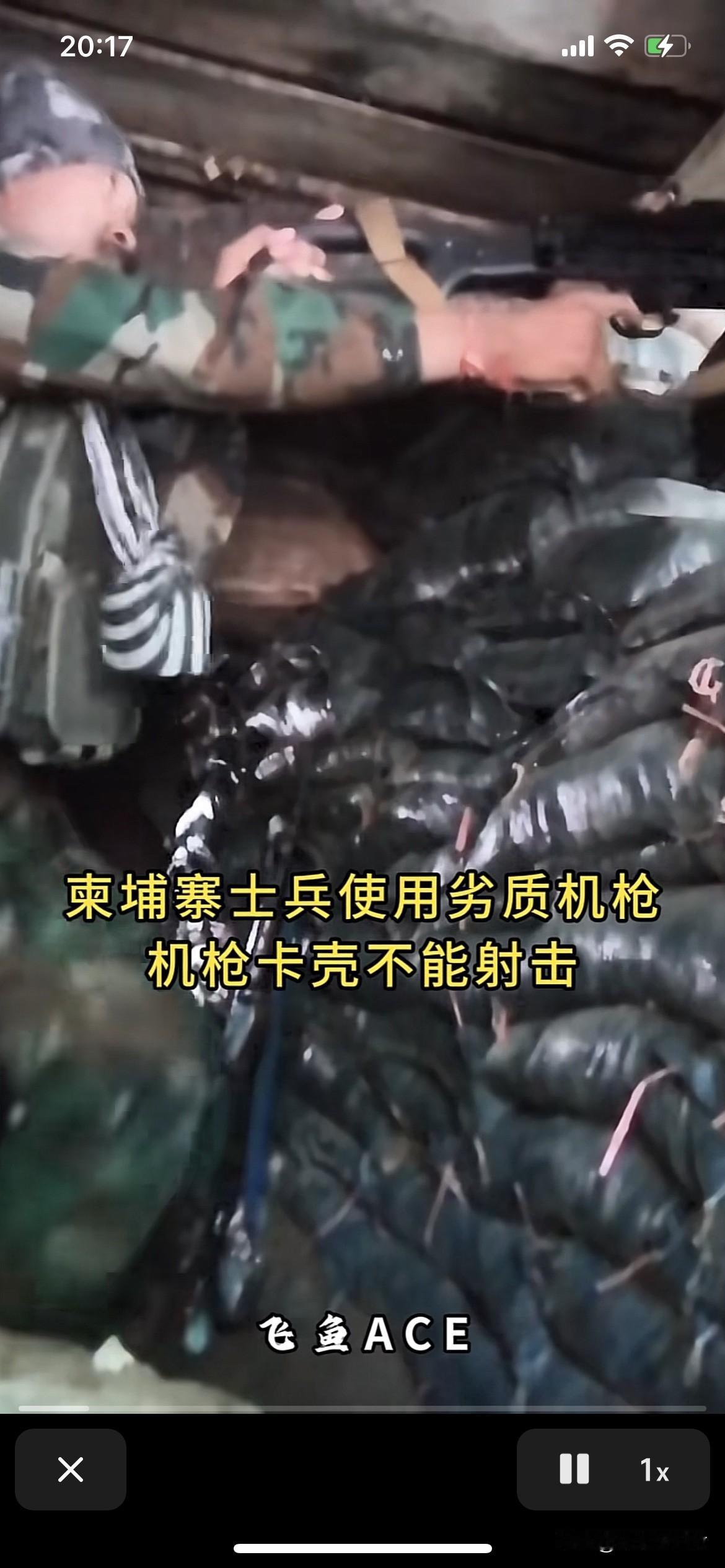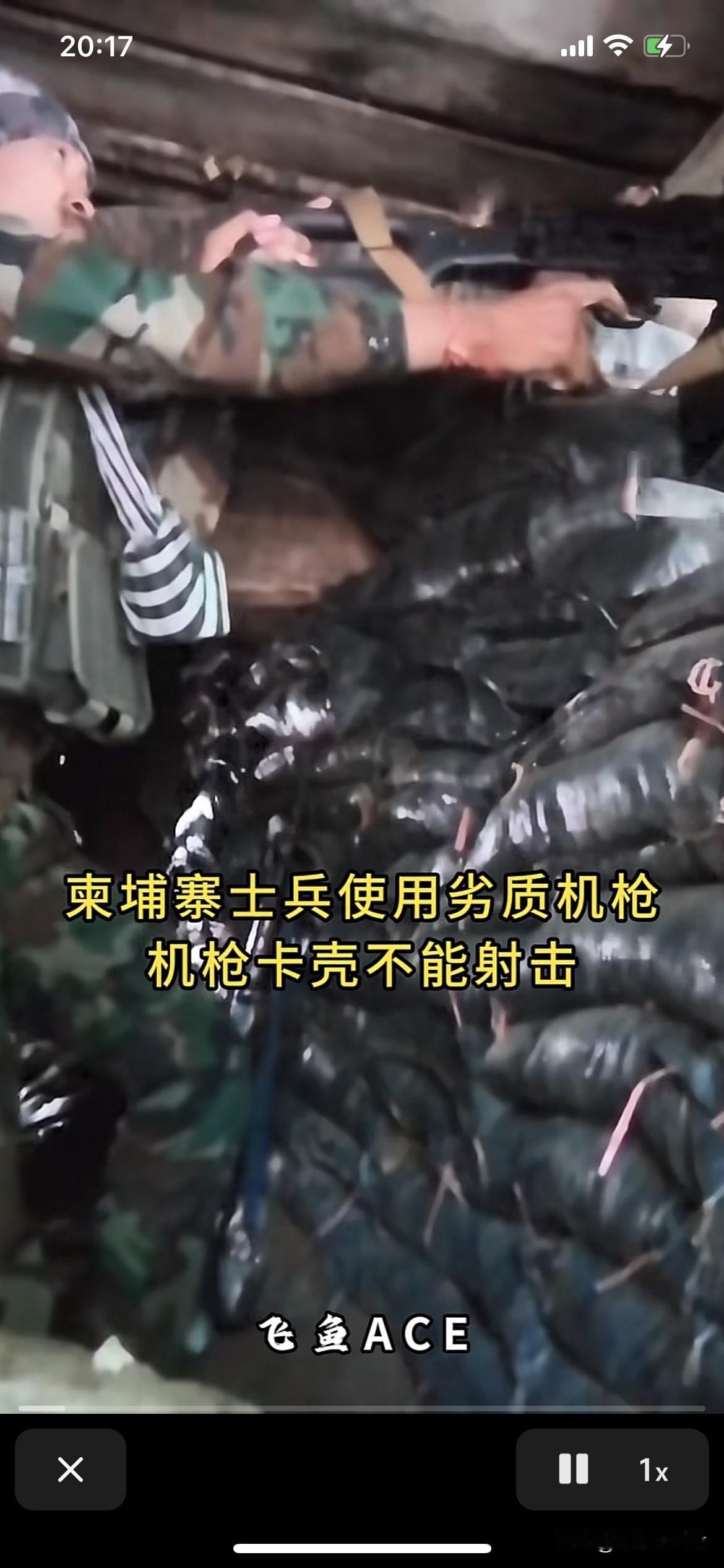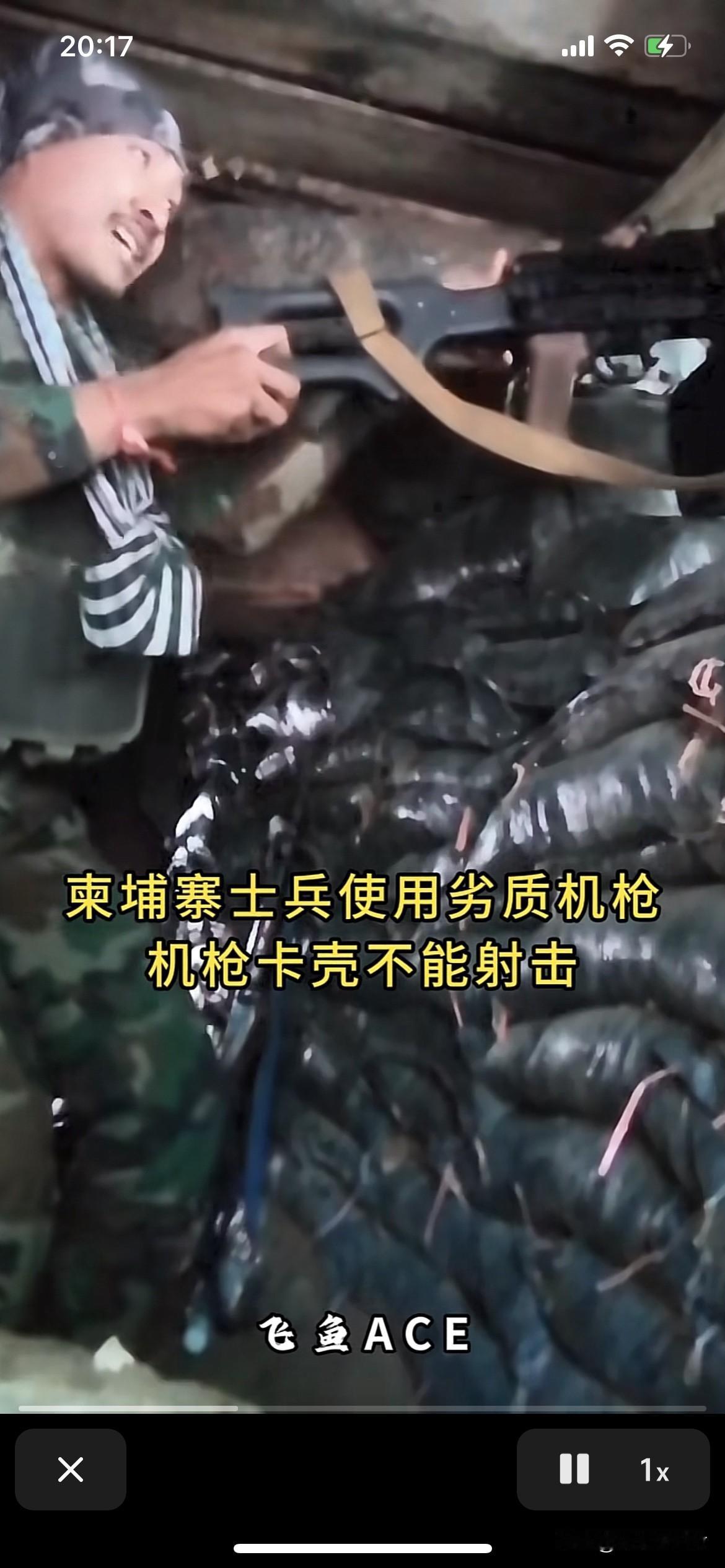 柬埔寨士兵在用机枪,打了一会儿,机枪卡壳了。这个士兵就修机枪。柬埔寨士兵还得会修机枪。这机枪应该很旧了。看到最后也没有修好。也许是受潮了。换一把机枪吧!