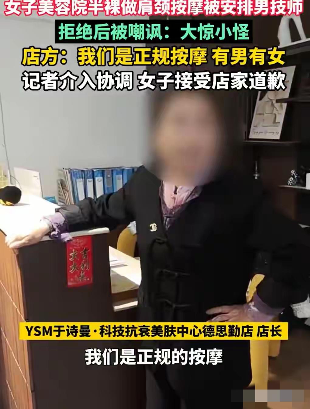 长沙黄女士到美容机构做肩颈SPA,脱上衣准备后,被安排男技师服务。她明确拒绝,却遭店家挖苦“孤陋寡闻”“20岁小伙看不上你”。店家未提前告知技师性别,既违背服务规范,也侵犯了消费者的知情权与隐私权。经记者协调,店家致歉。此事凸显,涉隐私服务需尊重顾客选择权,提前沟通是底线。