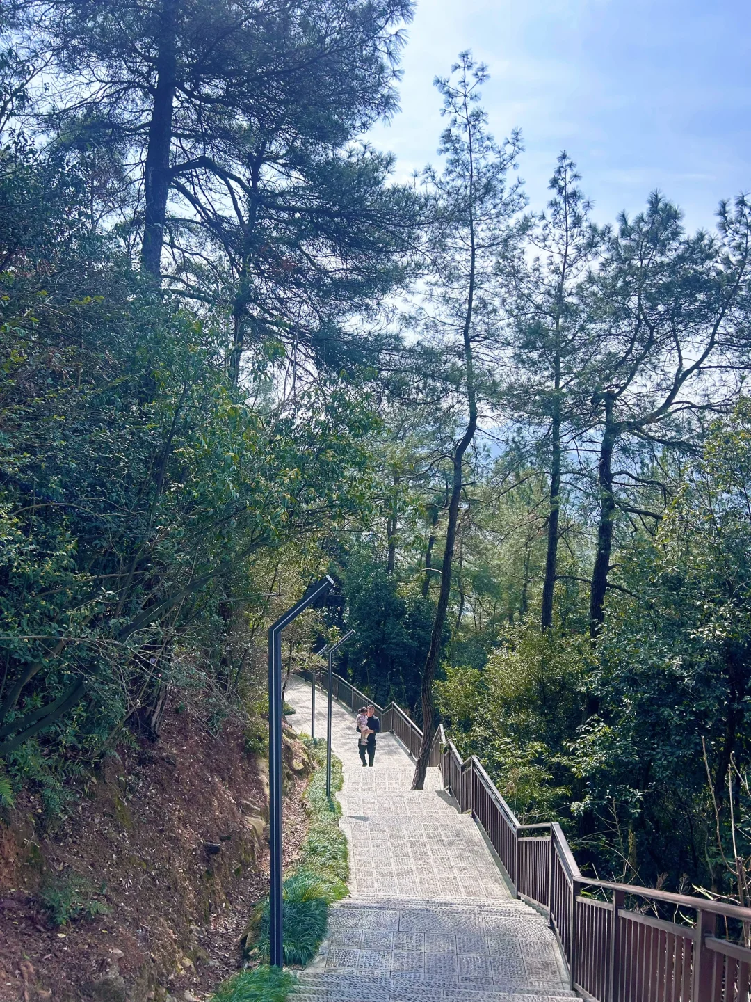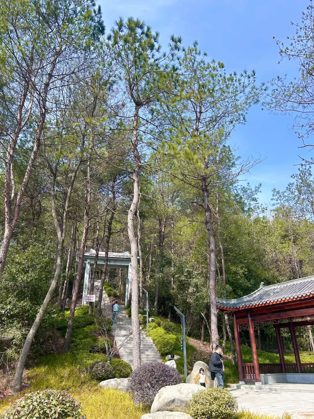 凤凰山公园,全程都是游步道,不是很陡,潼宝在爸爸的辅助下也可以慢慢往上爬,途中有休息的亭子,🈶可以俯瞰整个安吉县城🌸