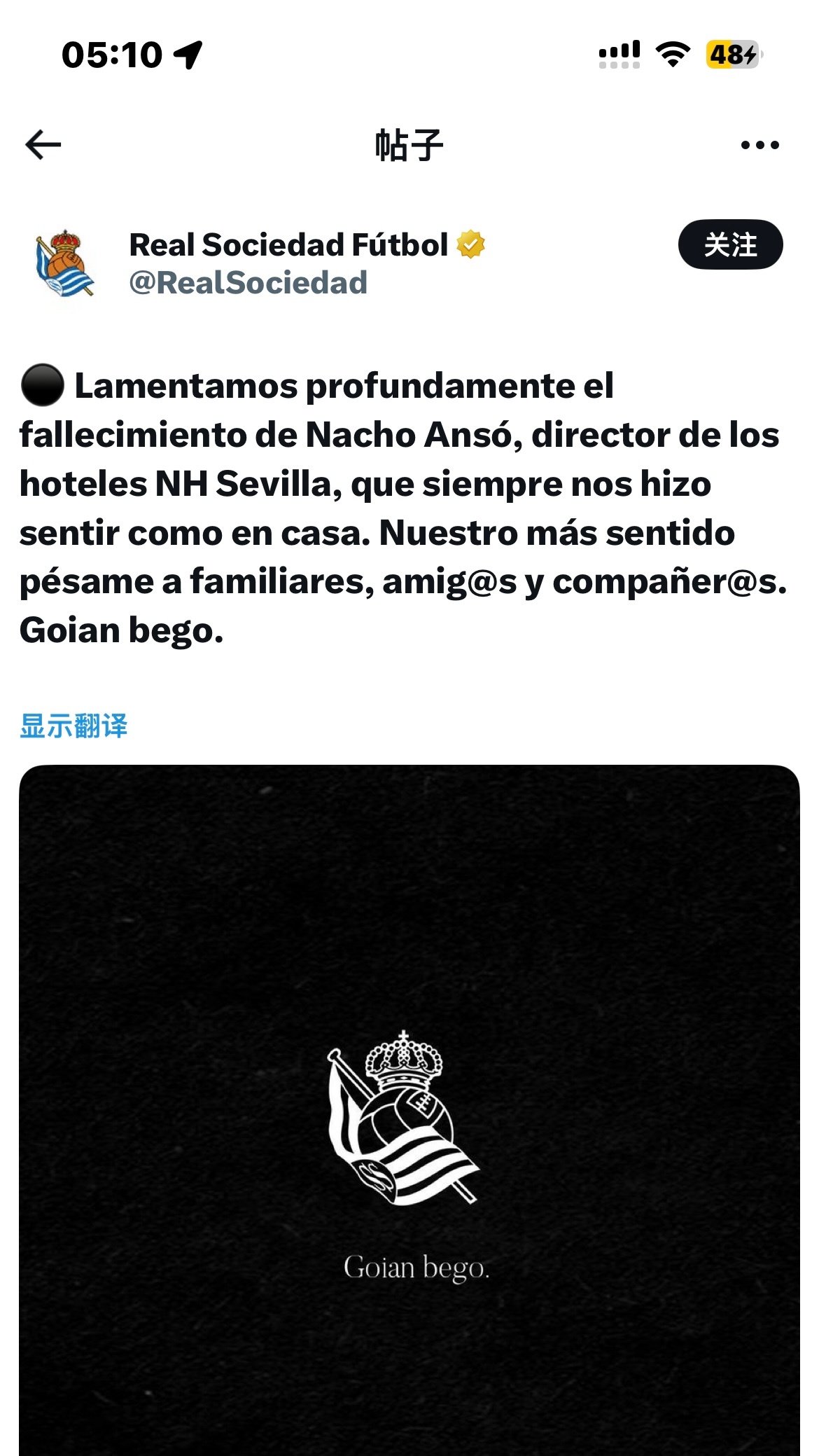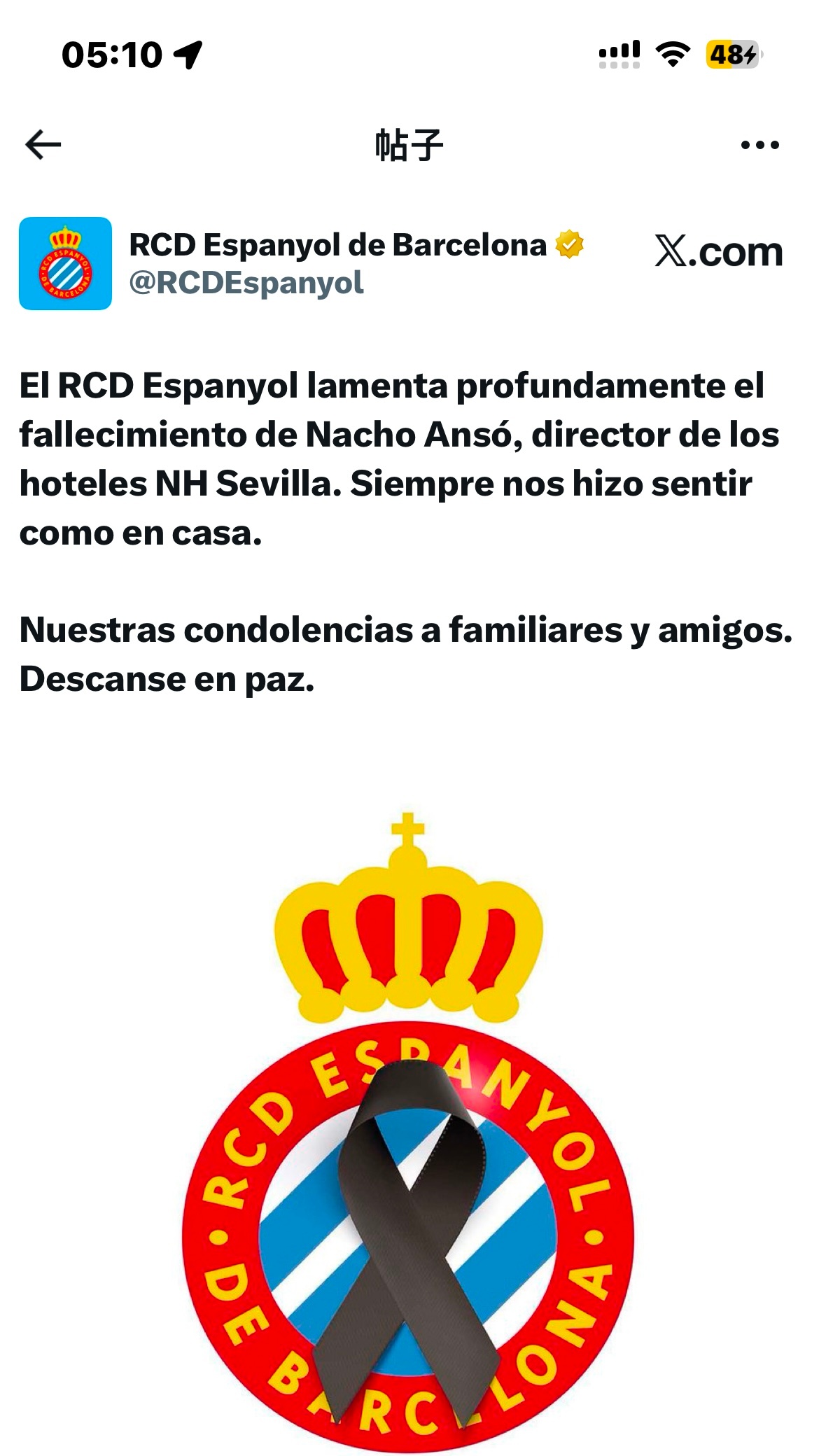 NH酒店塞维利亚分部总监Nacho Ansó在车祸中去世,X上西语足球圈集体为他送上纪念,从服务过的皇马到他的家乡球队Oberena。这两天因为那件事,总是能看到评论说,“穆里尼奥的话含金量还在上升”,当然事情的关键更是在足球界本身,就已经在利用它的社会影响力去尊重在各行各业做出贡献的人。这样的人不仅可以是金字塔尖的巨匠,同样可以至少下沉到一个服务过多家俱乐部的酒店中层管理者。