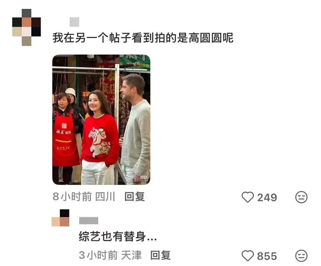 高圆圆录综艺被拍到有个“复制粘贴版”的自己,米色风衣墨镜包袋角度全对齐,只是死活不摘墨镜,在机位前反复来回走。 网友先以为她状态差靠替身干活,后来才搞明白是灯光师提前用光替调光。 这姑娘站那儿就是一道标准反光板,脸型肩线连背包高度都得一模一样,不然正式开拍高圆圆一入画,脸就黑成锅底,节目组得被后期骂死。 我蹲过片场,打光最烧钱,明星一分钟价顶灯光组半天工资,用替身先跑位,真身再来收成果,省下的都是黄金时段。 观众看综艺图个轻松,幕后全是毫米级算计,连影子长度都得提前量好,一点错就要重录,明星也怕熬夜脸垮,光替就是替大家省黑眼圈,真没必要酸。 光替不是偷懒,是给专业让路。 明星时间贵,灯光更贵,提前把影调锁死,正式录制一遍过,对观众才是福利。 理解工业流程,就少点玻璃心。