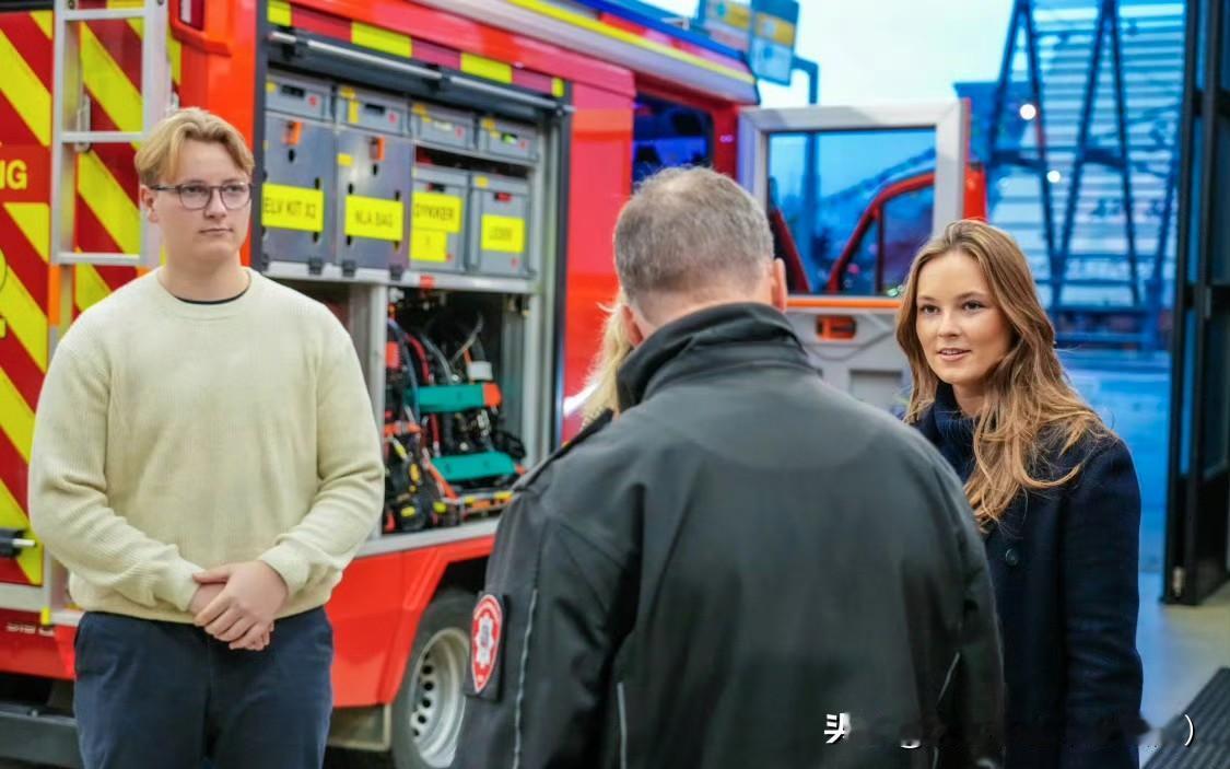 英格丽德公主和塞维利·马格努斯访问消防救援中心。放假回家的两人,圣诞节前马上参与公务,挺敬业!