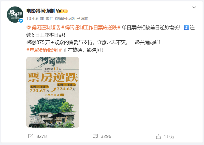 连续 6 日上座率领跑市场,《得闲谨制》的成功离不开扎实创作。肖战在片中的一镜到