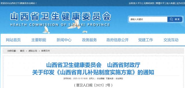 从2025年1月1日起,对符合国家法律法规及《山西省人口和计划生育条例》规定生育的户籍在本省的3周岁以下婴幼儿发放补贴,至其年满3周岁。
