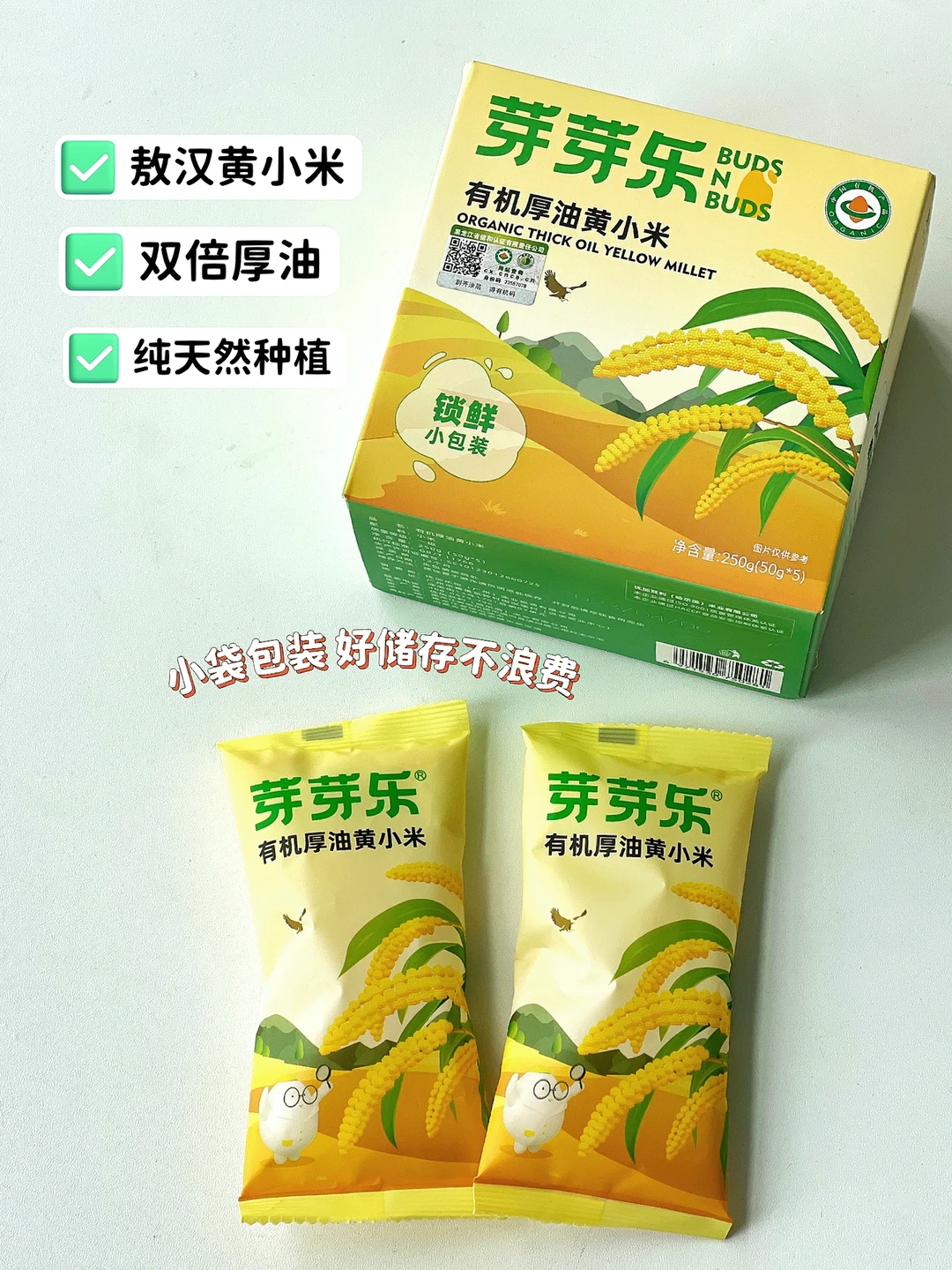 🔹用到的小米是芽芽乐家的有机厚油黄小米,富含不饱和脂肪酸,颗粒饱满,煮出来的粥有厚厚的米油,特别好喝,包装是小袋包装,用起来也很方便。