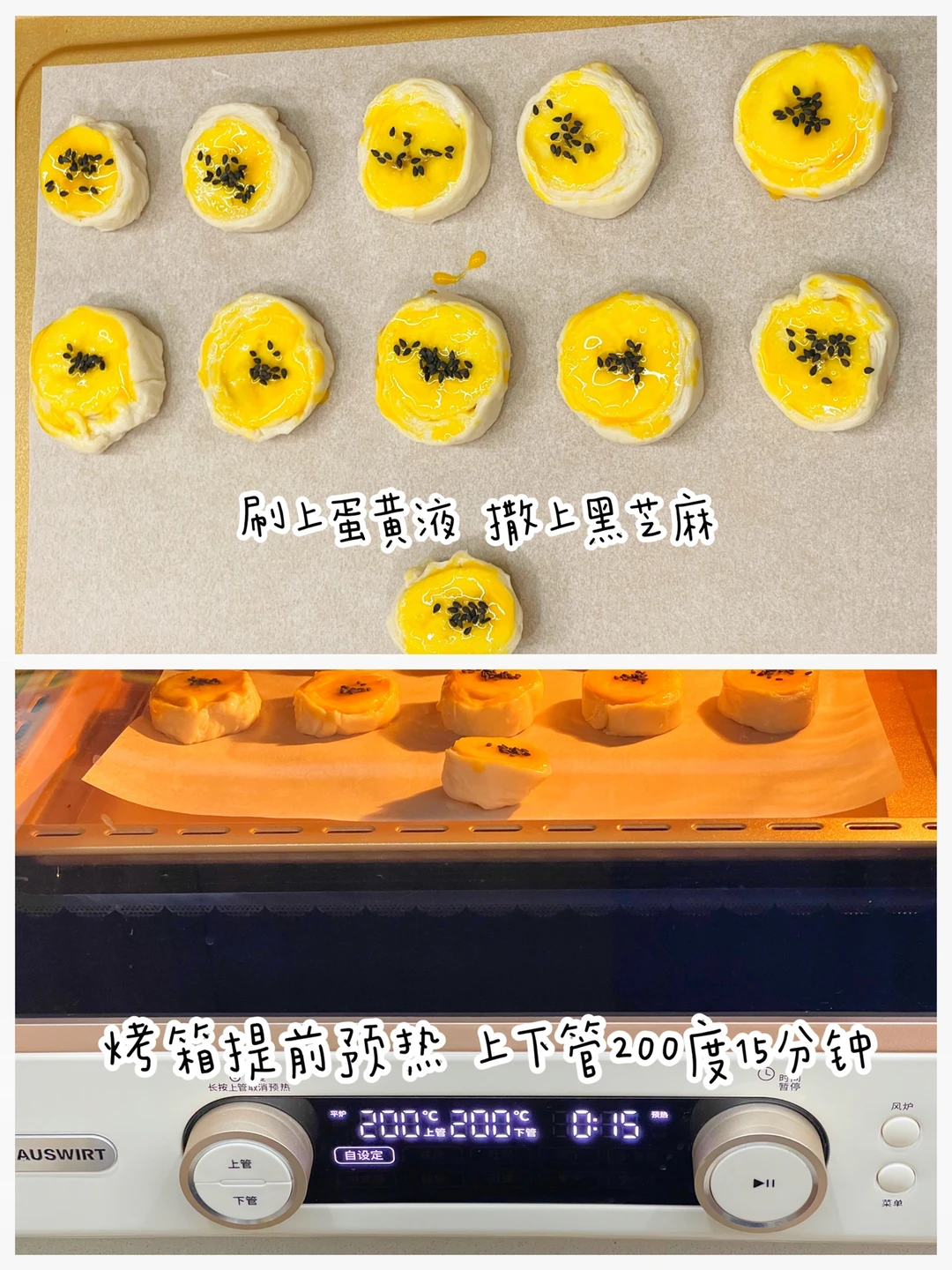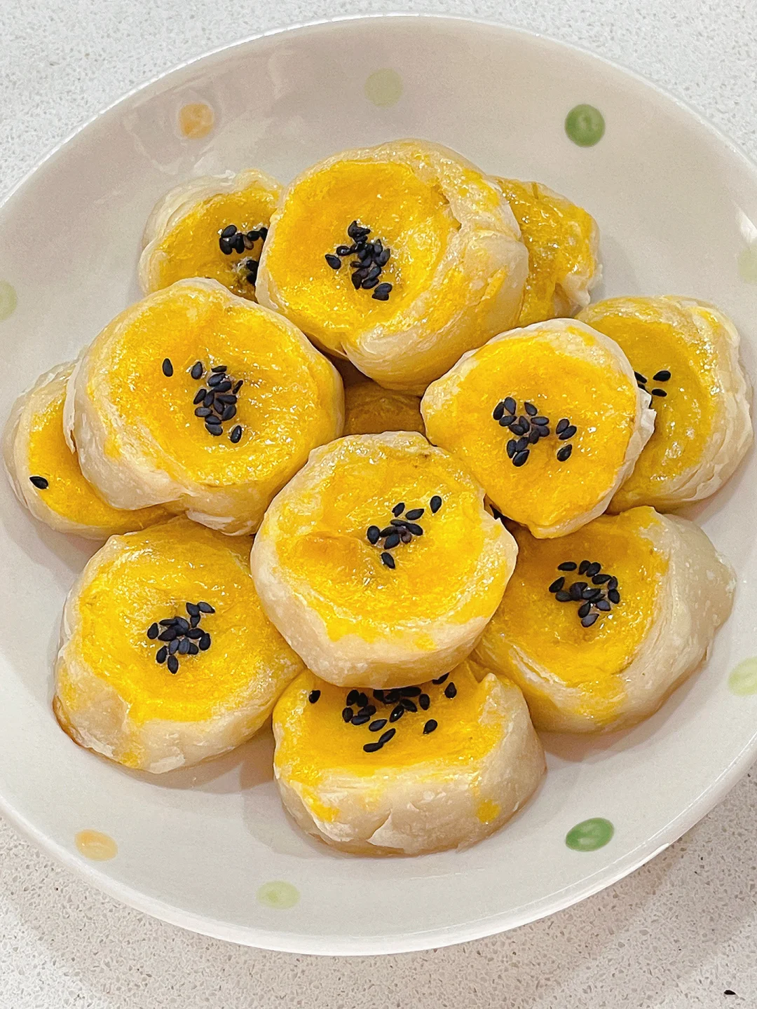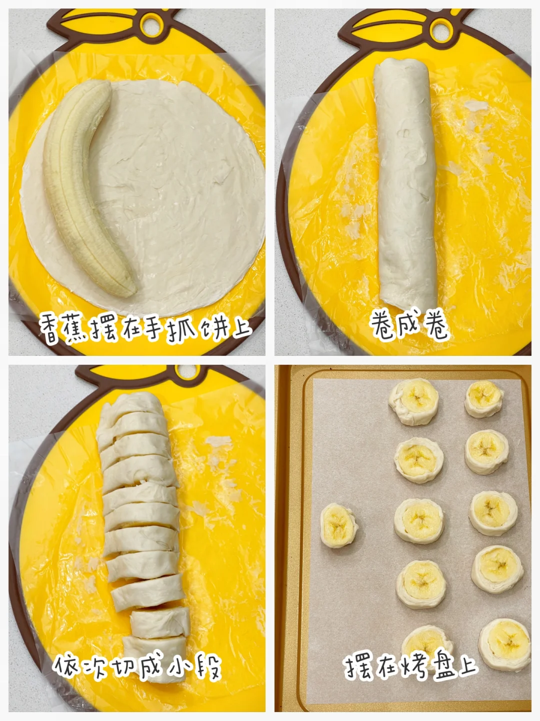 香蕉一口酥!答应我一定要试试今天这个做法,软糯香甜的香蕉,搭配上酥酥的手抓饼,还有黑芝麻的香,真的烤着吃太绝了!!主要做法还简单,当早餐或下午茶都能轻松搞定!给宝宝吃手抓饼可以换成黄油版的. ✅准备食材:手抓饼、香蕉、蛋黄 ✅制作方法: 🔹手抓饼解冻变软,把香蕉去皮放在手抓饼上,卷成卷,切成均等大小的小段. 🔹放在烤盘上,表面刷蛋黄液,撒上黑芝麻,放入预热好的烤箱,上下管200度15分钟。